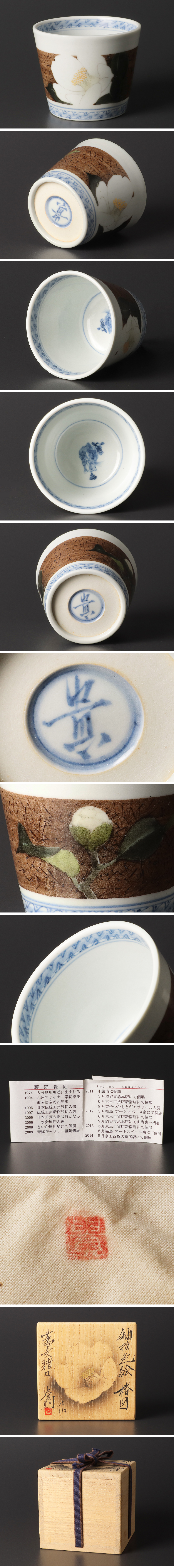 【藤野貴則】 1974年 大分県耶馬渓に生まれる。 1994年 九州デザイナー学院卒業。 陶芸家末岡信彦氏に師事。 1996年 日本伝統工芸展初入選。 1997年 伝統工芸新作展初入選。 2005年 日本工芸会正会員となる。 |