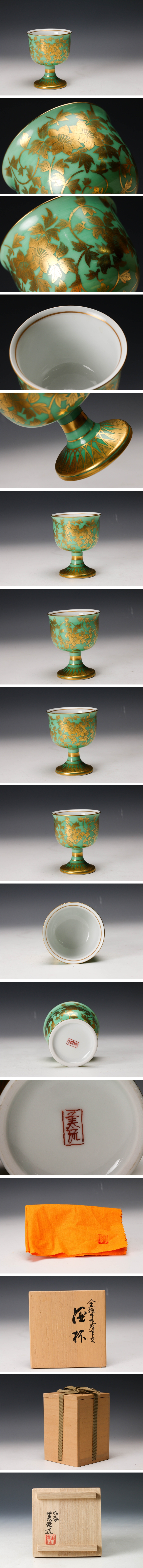 【佳香】人間国宝 三代 吉田美統 金欄手花唐草文酒杯 共箱 共布 本物保証 收藏