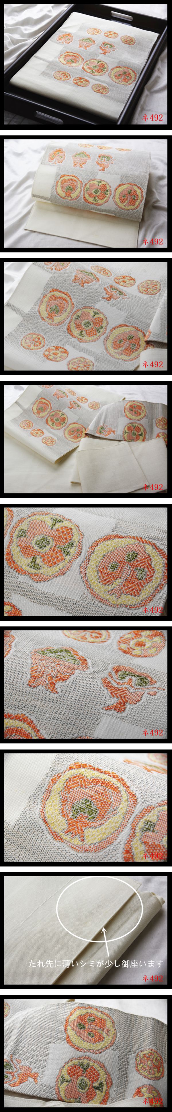 | 商品説明 | 当サイトは、皆様にお楽しみいただくためご用意しておりどうぞ安心してお楽しみください。 まとめて取引以外で同梱不可 当サイトは、皆様にお楽しみいただくためご用意しておりどうぞ安心してお楽しみください。 商品についてのご質問等がある場合は「出品者への質問」必ずオークション開催中「出品者への質問」欄からの質問のみ受付いたします。 多忙の為質問回答できない場合が御座います問題解決してない場合ご入札しないで下さい、オークション終了後、商品についての質問答えができません 出来る限りスムーズな対応で早くお客様と楽しく、気持ちよく取引ができるよう努力してまいります。 誠に勝手ながら、当方はヤマト運輸のみ福岡から発送とさせていただきます。 (ヤマト運輸の料金改定のため、送料実費を頂き) 発送サイズについては袋帯1~4枚までヤマト運輸宅急便(80サイズのみ) 送料に関してクレームは一切お受け出来ませんので 入札前に必ずヤマト運輸宅急便運賃一覧表ご確認ください。 ヤマト運輸宅急便運賃一覧表:九州 https://www.kuronekoyamato.co.jp/ytc/search/estimate/kyusyu.html 発送方法、時間指定不可の場合が御座います。 他店舗は別店舗として異なるシステムで運営致しておりますため、(他店舗別IDの同梱不可) 、同梱は当店落札商品のみお受けいたします。 委託者の御希望価格とあまりかけ離れている際は、オークションの取消しをする場合がございます。 ーーーーーーーーーーーーーーーーー ★商品種類:名古屋帯 ★素材:正絹 木箱等付属品なし ★現物状態:中古 数回締め 表面、たれ先に小さなシミが少し御座いますが、あまり目立たず、まだまだ着用頂けます、着用時は良い状態で感覚には個人差がございます、あまり細かい事を気にしない方の入札をお願い致します。 色相ダメージ感覚には個人差があり中古品の事を理解して、ノークレーム・ノーリターンでお願いします、完璧なものをお望みの方は入札をお控え下さい。 【新品出品するの場合は現物状態※「新品」明記致します】経年に伴うシワ、シミ、汚れ、傷等のチェックには注意を払っておりますが見落としがある場合もございます色相ダメージ商品説明などは当方の主観であることをご了承下さい 中古品の事を理解して、ノークレーム・ノーリターンでお願いします。 完璧なものをお望みの方は入札をお控え下さい。 万が一明らかに説明文と違う商品が届いた場合、返品可 高価な品物、超格安価格からの出品、 消費税無し 入手困難早い者勝ち ★同梱可能★複数落札まとめ買い★送料お得 |