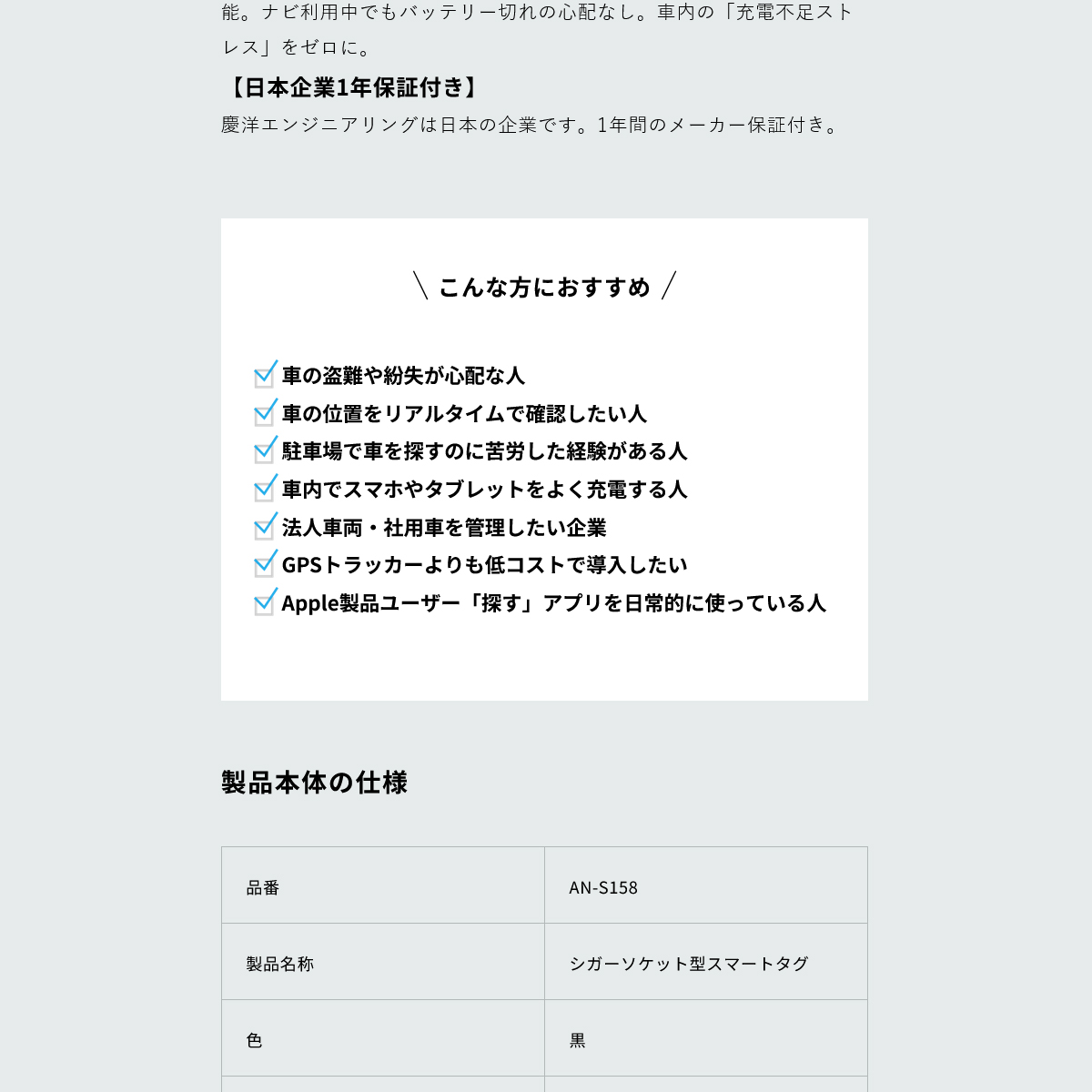 | ■商品名 | スマートタグ搭載シガーソケット |