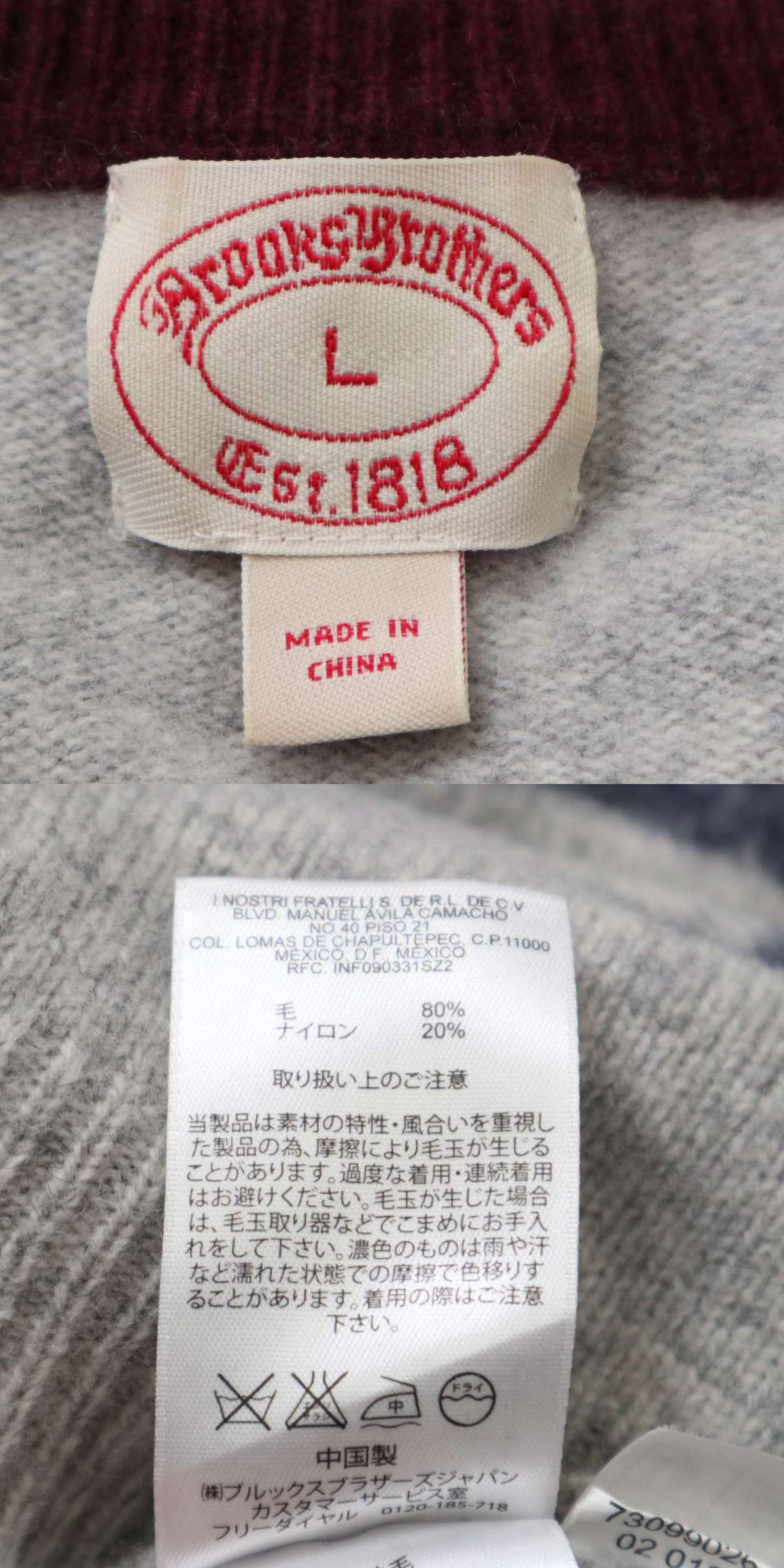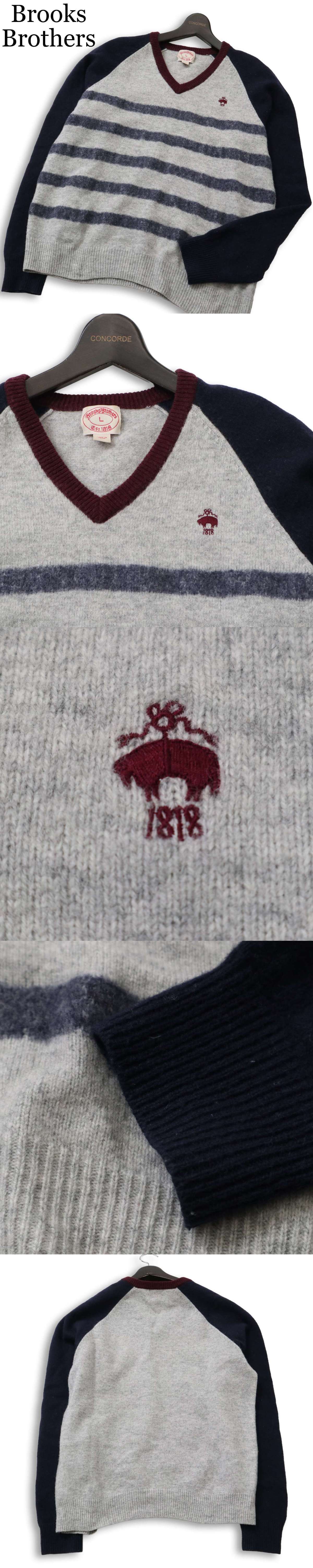 Brooks Brothers ブルックスブラザーズ 秋冬 ロゴ刺繍★ ボーダー ウール ニット セーター Sz.L メンズ 收藏