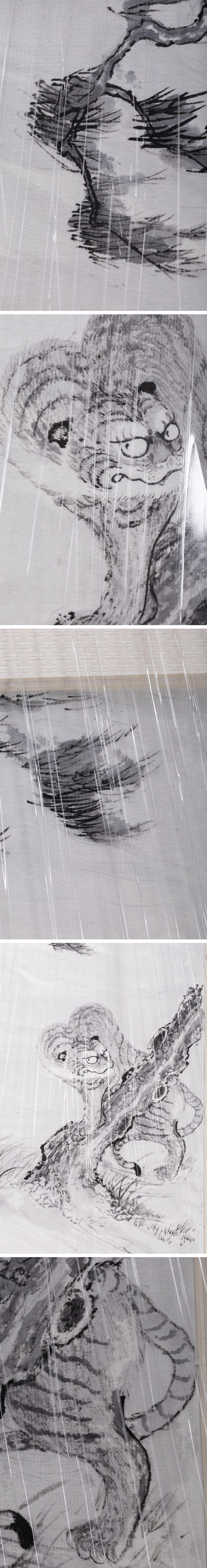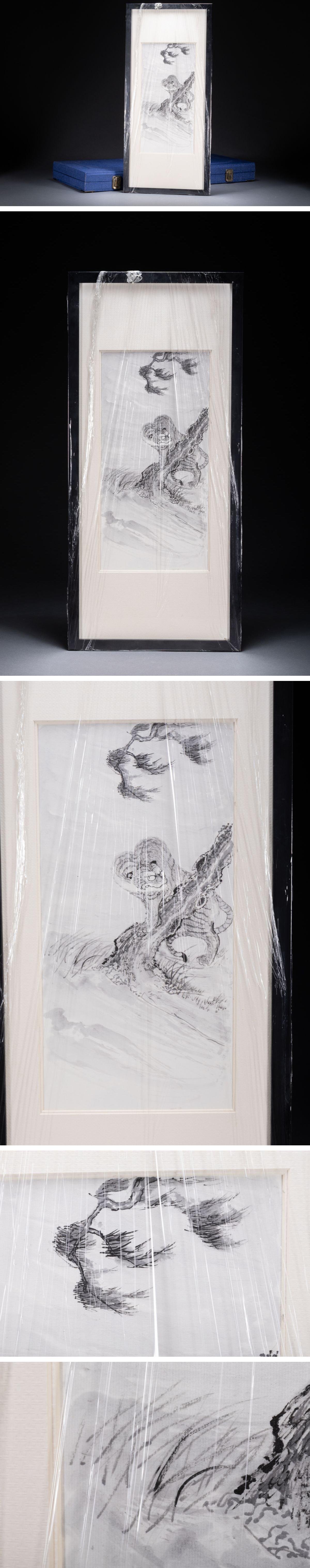 【清】関西某オークション購入 中国・時代物 佚名 手書虎図額装 極細工 古置物 古擺件 中国古美術k-40S1