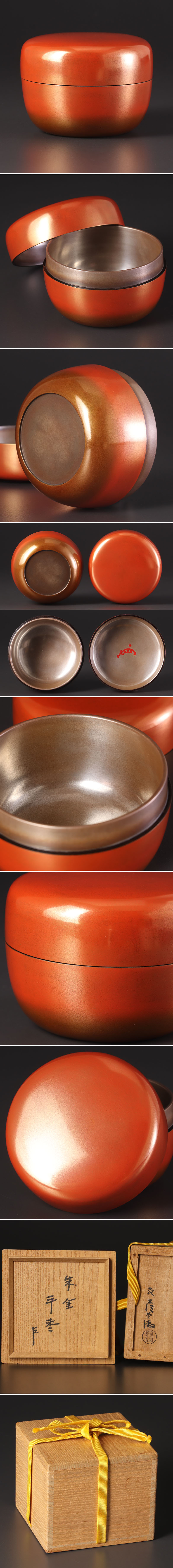 混ざり合う朱と金が大変美しい逸品です。 ★商品は九代西村彦兵衛(象彦)作、即中斎書付の作品である事を保証致します。 |