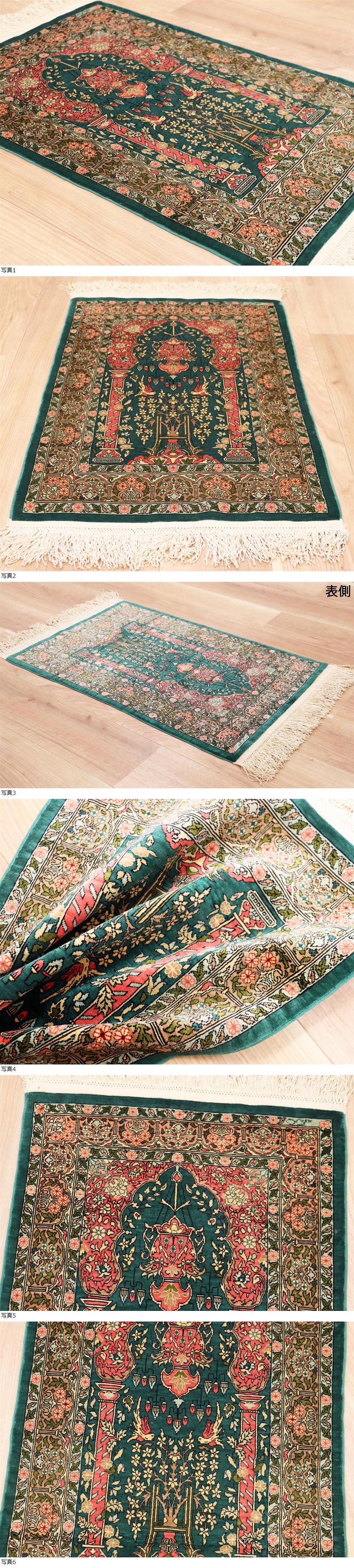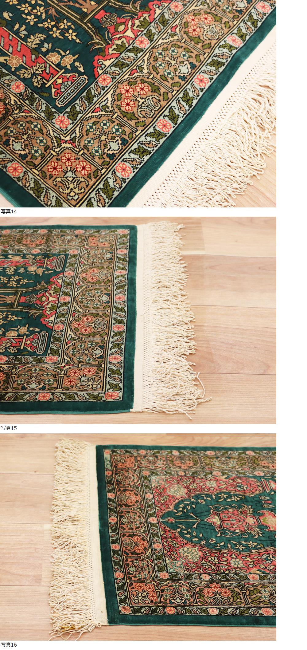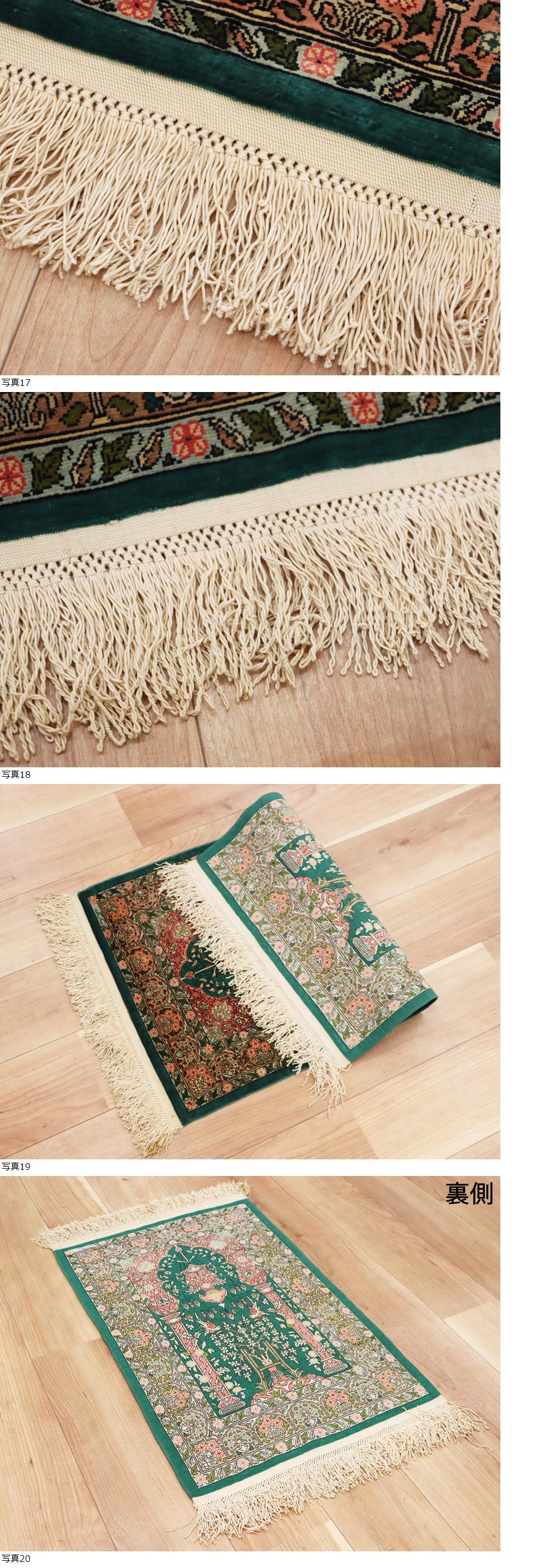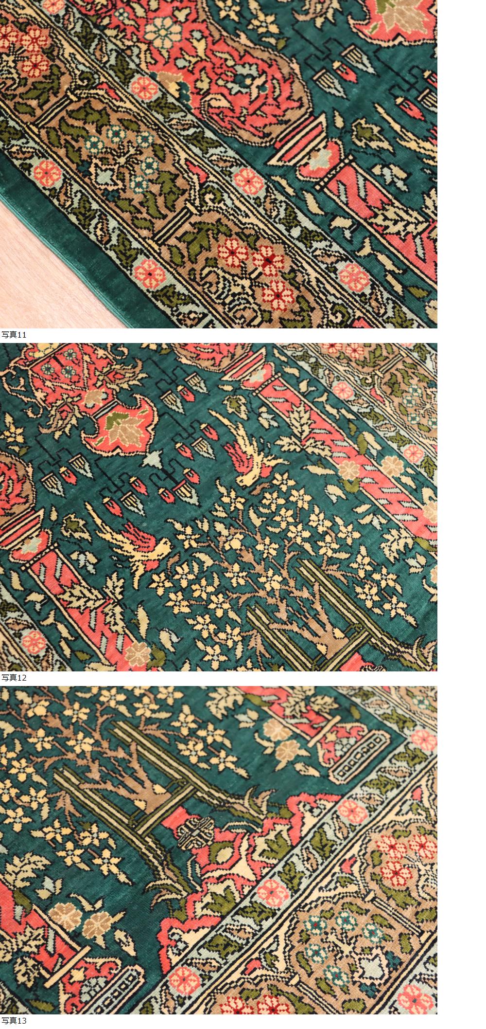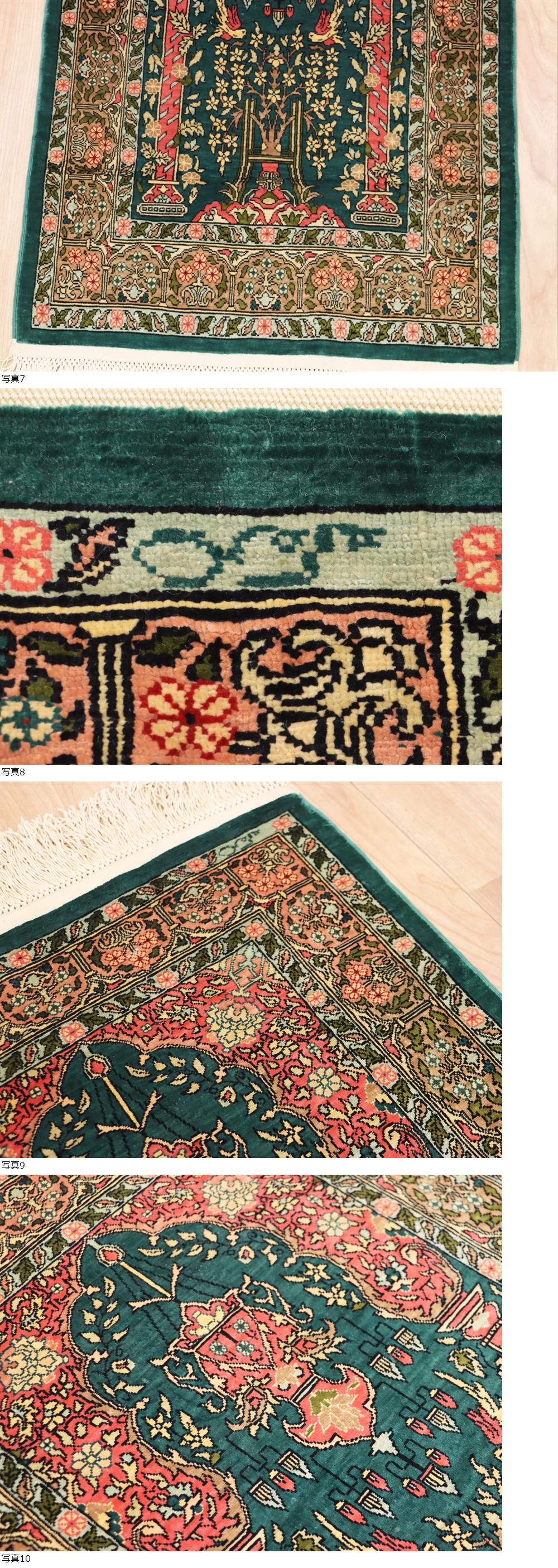 魁◆最高級ペルシャ絨毯 トルコ ヘレケ 総シルク100% 総手織り100万ノット 71×49㎝ グリーン庭園文様 工房サイン有 ヘレケ最高級絨毯! 收藏
