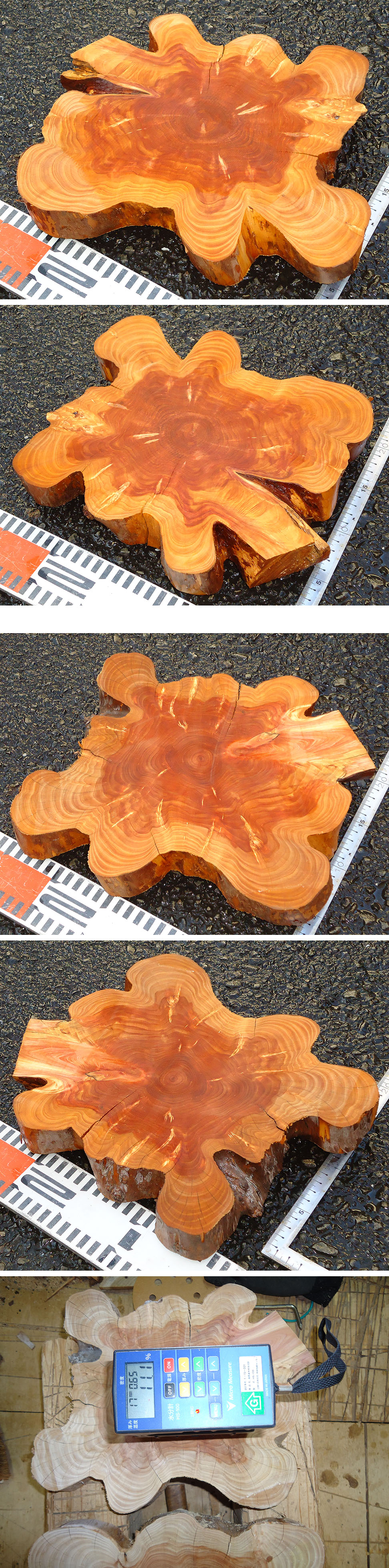 ・加工内容(輪切材で手間のかかる両面電気カンナかけ、及び時間のかかる耳の皮ほぼ取済)のわりに、お求めになり易い価格にしておりますので写真と、状態〔 状 態 ★★★☆☆評価〕でご判断ください。