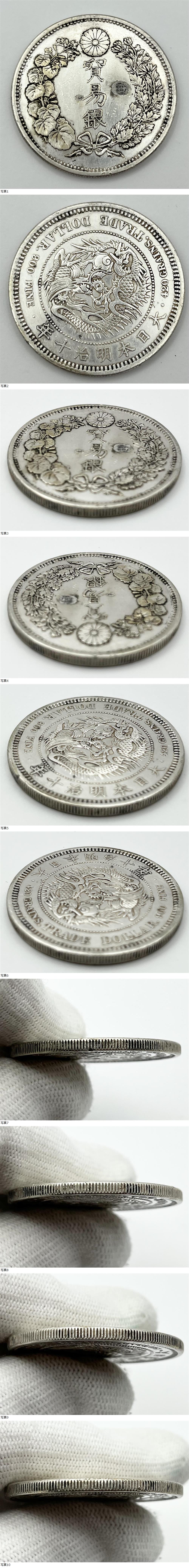 | [A529]貿易銀 明治10年 荘印あり 重量約27.1g 直径約38.6mm 厚さ約2.6〜2.7mm 比重10.3 日本古銭 銀貨 竜 SV900 |