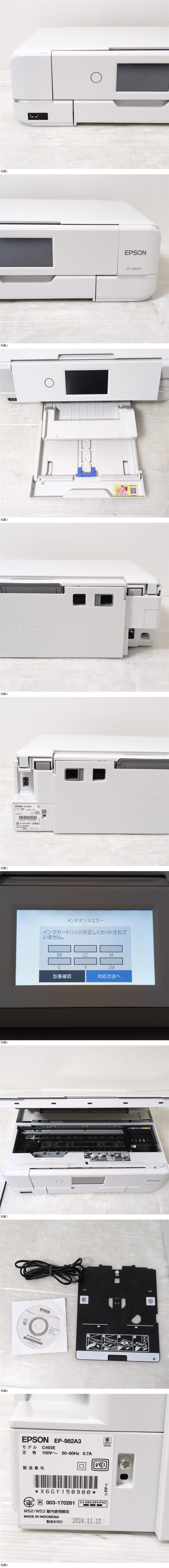EPSON EP-982A3 2024年製 エプソン インクジェットプリンター 複合機 現状品 ホワイト 白 收藏