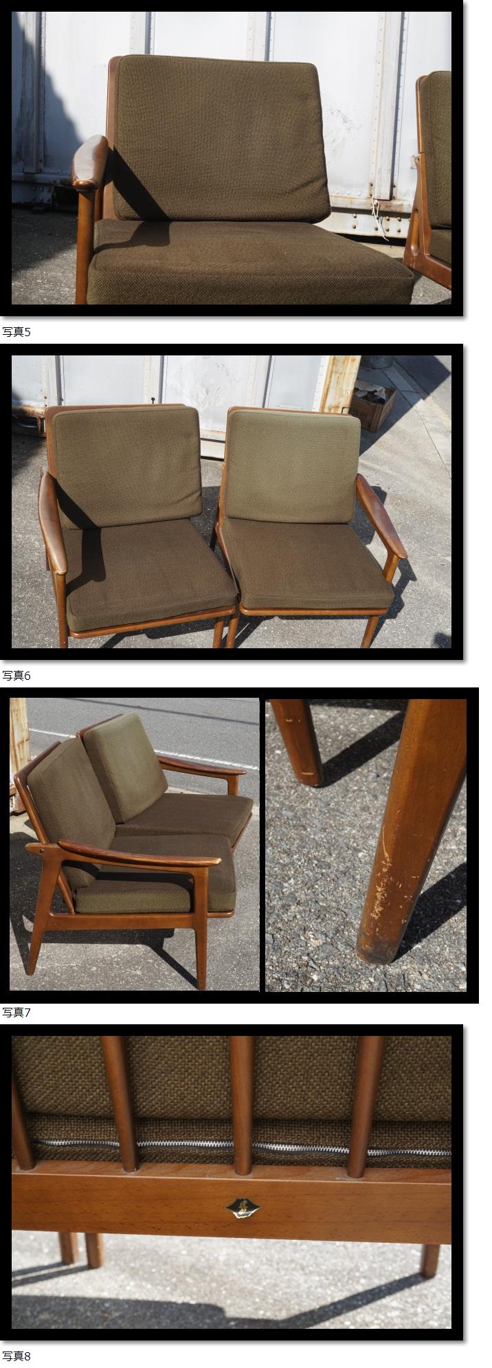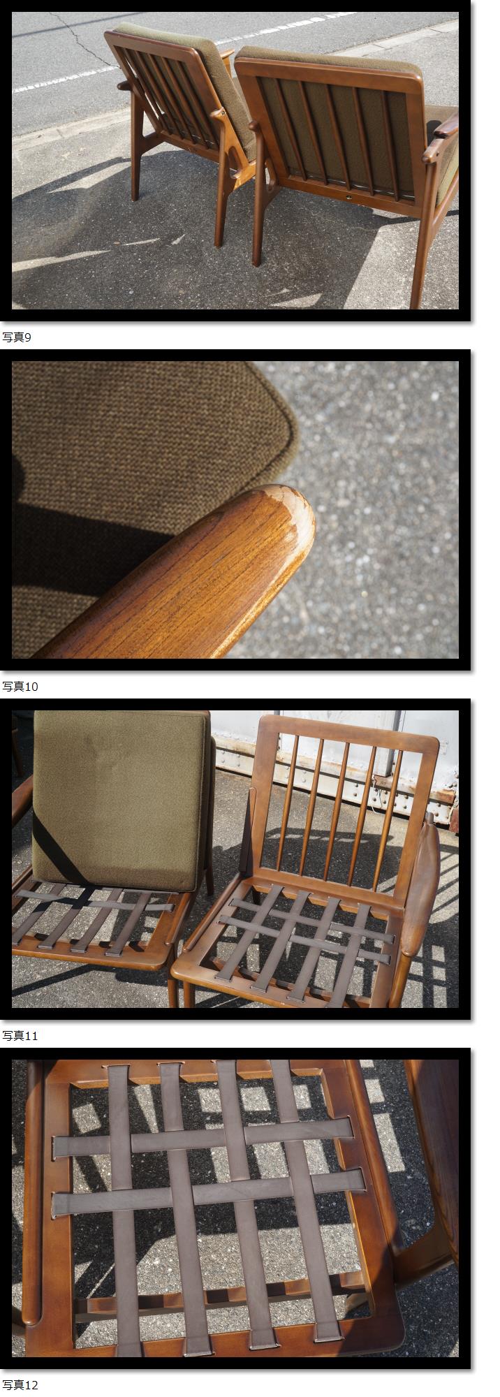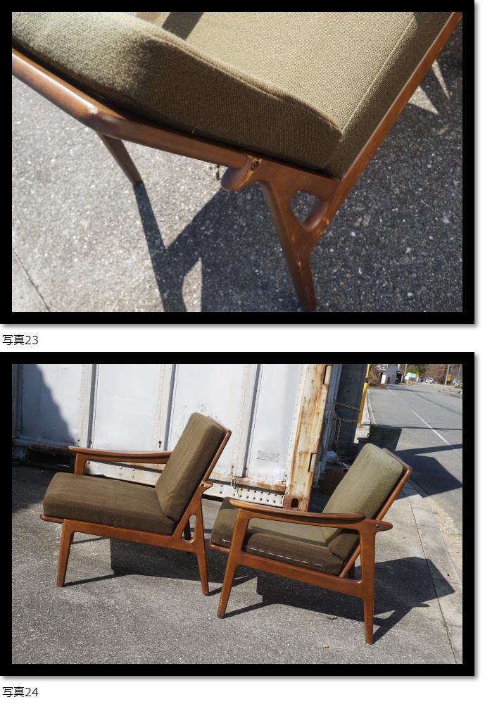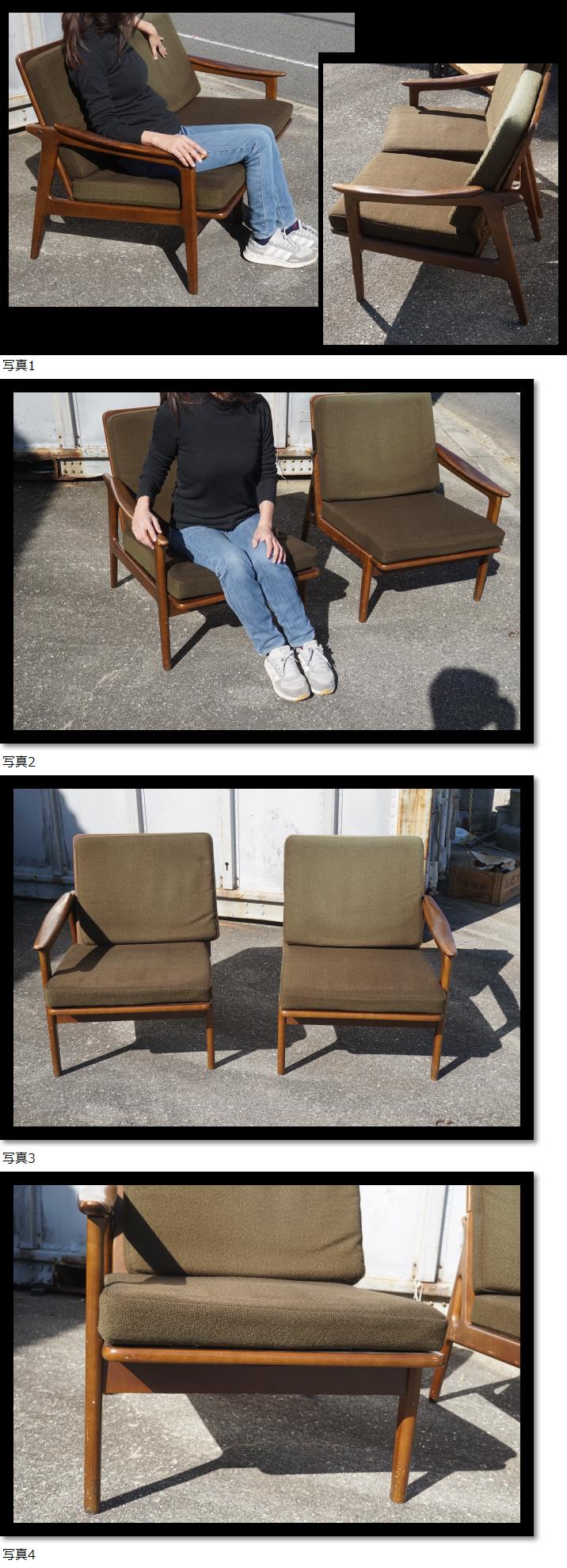 | 富士ファニチャー FUJI 肘付き 椅子 2客セット ソファー 一人掛け 木製 60s 昭和レトロ アンティーク 検)カリモク マル二 |