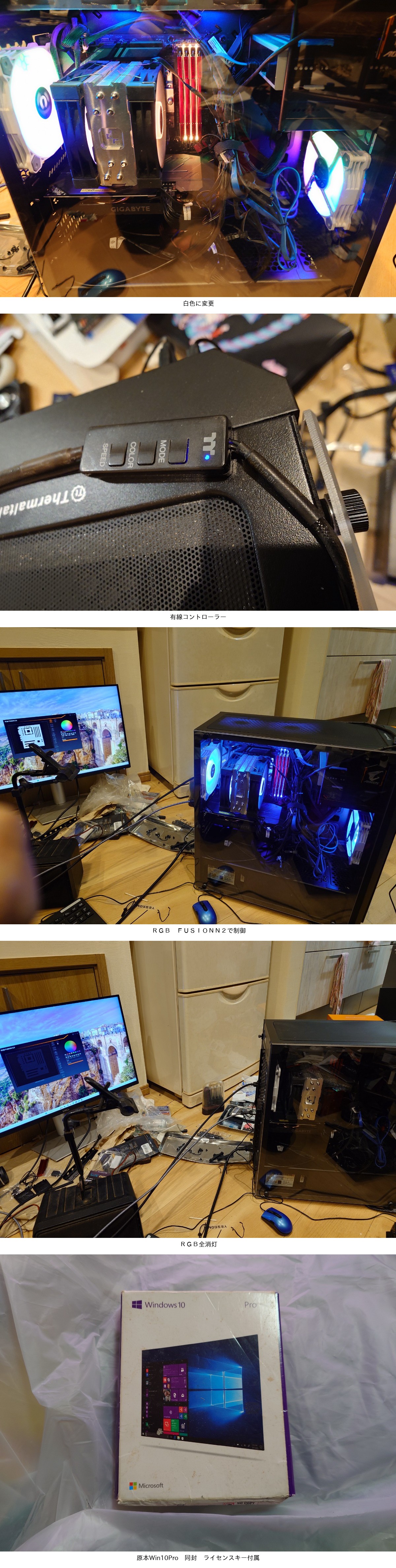 | 『部品構成』 【オペレーション・ソフト】最新Windows11Pro 初期状態インストール済(発送時) 【CPU】 Intel CoreI9 9900K(以前約5年使っていた中古)第9世代 【メモリーカード】TEAMGROUP ELITE DDR4 16GB×2×2 4本挿し64GB 3200Mhz TPRD418G3200HC22BK 【マーザーボード】 GIGABYTE Z390 AORUS PRO(購入中古) 【グラフィックカード】 GIGABYTE GEFORCE RTX-2060 P6 12G (GV-N2060D6-12GD)新品購入 【CPUクーラー】 DeepCOOL AG-400PLUS ファンをARGB FAN FC-120に交換(新品購入) 【ケース】 Thermaltake Versa H26 BLACK 新品 【ストレージ】 C:FIRECUDA 530 SSD PCIe G4 ×4 NVME 2TB SEAGATE ZP2000GM30013 読込速度7300 書込速度6900中古 D:M5950G70PCLE4HSE-04TB MONSTER 7100 6100新品 両方ともM.2第4世代の合計6TB搭載です。 【電源】玄人志向 KRPW-BK750W/85+ 750W 80PLUS BRONZE 中古 【ファン】Thermaltake Pure 12 ARGB 4個 dpcの外したもの1個 中古・新古 【ドライブ】Blu-Ray DISK Rewriter BH14NS58 日立製みたいですがバルク 中古 『詳細及び注意要綱』 ・写真等の画像・動画はDEMO用として、当方がいろんなソフトをインストールしてこのくらいの性能があるPCとして駆使し、アピールしております。たしかに5年前のCPUを積んだ古パソコンなので、最新のものには及びませんが、そこそこの使い方ならあと数年はまだまだ使えるものと確信します。 ・ストレージの性能ですが、PCIe 4.0のSSDは、モデルによりますが読込速度が 7,000MB/s 前後出せるものが多いです。しかし、本マザボZ390(PCIe 3.0)のスロットに差すと、インターフェースの物理的な限界により 最大でも 3,500MB/s 前後 で頭打ちになります。但し、運用上問題はございません。 ・ケース・マザボ・GPU・メモリーの外箱(化粧箱)、各種現物がある部品説明書も同封します。なので、本体梱包箱(ケースの外箱)と部品箱梱包の2個口となります。送料は御落札後に提示致します。 ・まったくのPC初心者の方にはちょっとハードルはありますが、Youtubeにさまざまなノウハウ動画やChatGPTなどAIを駆使すれば、それはど厚い壁ではないでしょう。 ・前で述べたように、DEMO用にいろんなソフトを入れましたが、出荷前にはすべて削除し、Win11のみ初期状態にてインストールされた、まっさらな商品です。 第三者に販売するため、個人情報は全て削除する必要があるからです。 ・上記により、OSに付属した基本ソフトのみなので、まずは、WinのSETUP作業はもちろん、Officeやゲーム・映像編集などソフトの全てご自身でのインストールが必須です。 ・このPCはメモリーが当時CPU限界の4枚挿し、64GB搭載されております。 どちらかというと、ゲーマーの方より、クリエイター向けのPCとして作製しました。 但し、グラフィックカードのVRAMが12GBありますので、FF14ベンチで「とても快適」、FF15ベンチで「快適」ですので、まあまあ、多少強い仕様となっております。そのへんもふまえてのご入札をお待ち申し上げます。 ・出品終了までの間、7日間で仕様変更等あれば、順次追加連絡致します。 I'll be back | ||