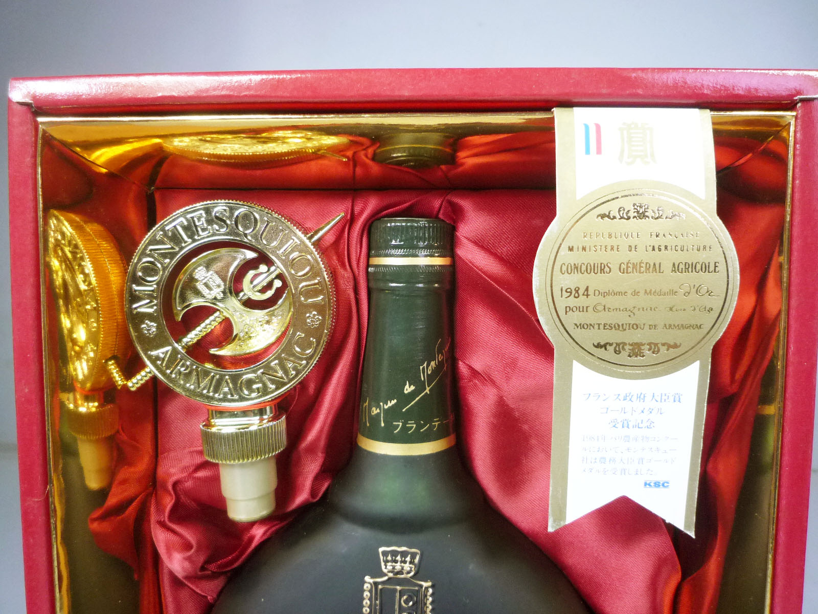 | 商品状態 | ・長期保管品の為外観にはスレ等多少のダメージが御座います。 ※ボトルには経年経過による擦り傷、汚れがある場合や、コルクの劣化などがある場合がございます。 どんな場合でも、一切の保証が出来ませんのでご了承下さい。 ※未開栓となりますが、風味や中身は保証出来ませんので、神経質な方のご入札はご遠慮下さい。 |