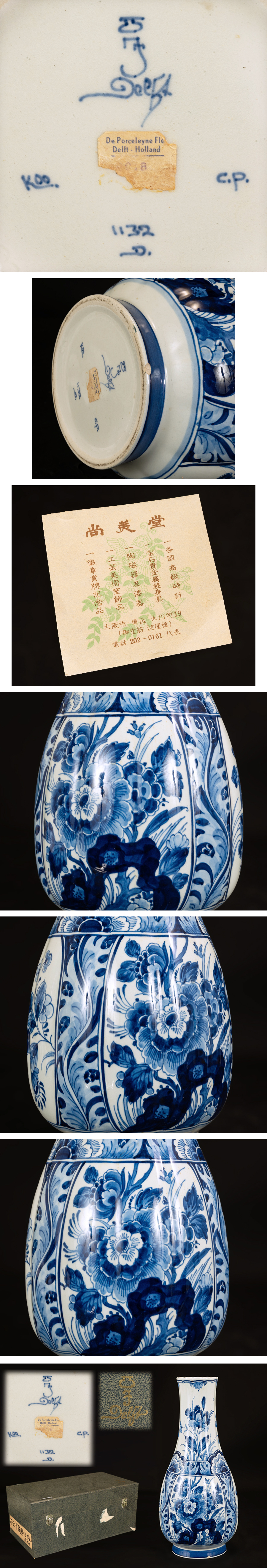 ●ロイヤル・デルフト Royal Delft コバルト釉 オランダ 古花瓶 花入 共箱● 收藏