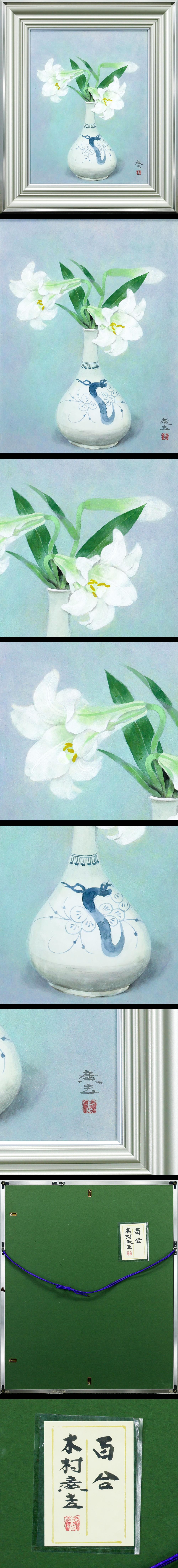 【真作】【WISH】木村広吉「百合」日本画 10号 共シール ◆清らかに咲く白百合の花 〇日展会員 師:西山英雄 島根県出身 #26023214 收藏