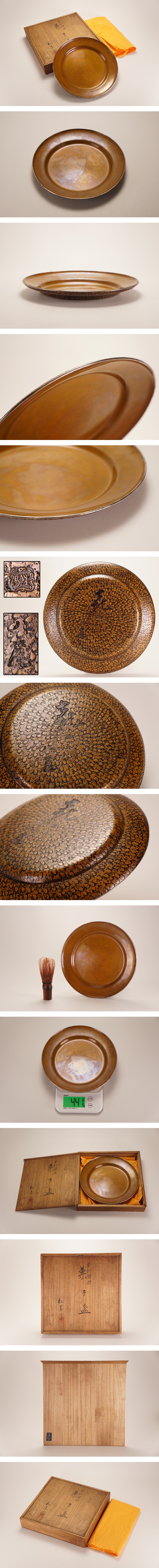 【茶の器特集】NS21◆生駒造 松美斎 八尾 喜字書 黄銅 銀縁 菓子盆 在銘 共箱◆茶道具 茶器 うぶ買取品 蔵出し 売り切り 古美術 收藏