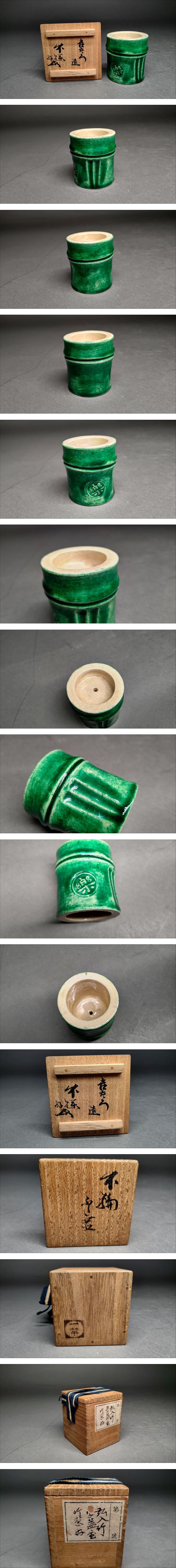 【茗】弘入 楽 吉左衛門 造 青 竹 蓋置 藪内流 透月斎 好 書付【休々 燕庵 竹風 比老 不住 斎 剣仲 樂 楽吉左衛門 直入 道年 大樋】 收藏