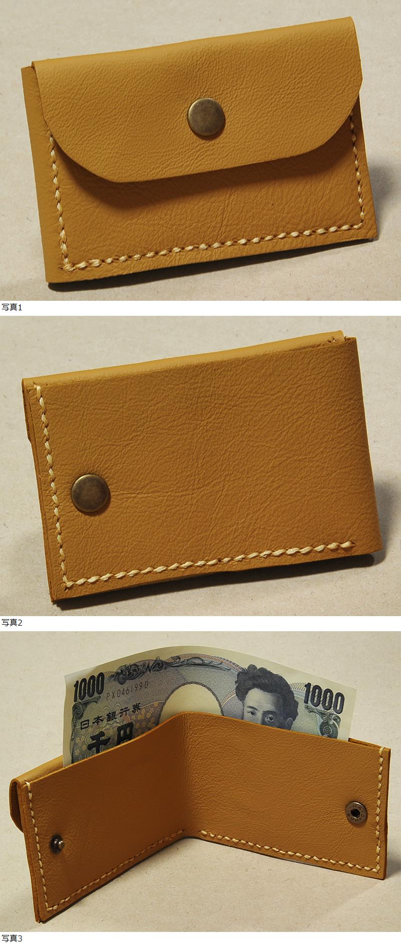 ◆[ハンドメイド]本革 二つ折りコンパクト財布 からし色◆ 收藏