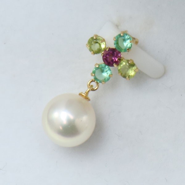 | あこや真珠8.25-8.5mmパールペンダントです。ホワイトピンク基調の美しいパールであこや真珠ならではの輝きです。 | グリーンクオーツ、ペリドット、ロードライトガーネットの半貴石輝く18金パールペンダントです。 | |||