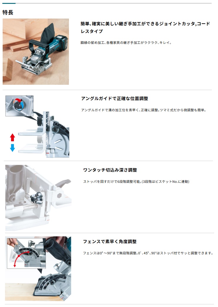 マキタ makita充電式ジョイントカッタ PJ180DRGバッテリ(BL1860B)x1個+充電器(DC18RF)+プラスチックケース付■簡単、確実に美しい継ぎ手加工ができるジョイントカッタ,コードレスタイプ■アングルガイドで正確な位置調整■ワンタッチ切込み深さ調整■フェンスで素早く角度調整88381761086