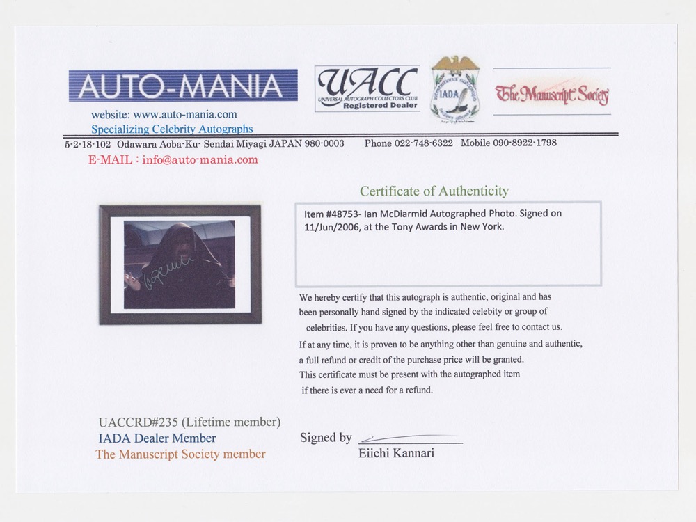 アン・マクディアミッド 直筆サイン入写真 2006 平18 オートマニア Autographs オートグラフ 証明書付 - 管: A48753 收藏