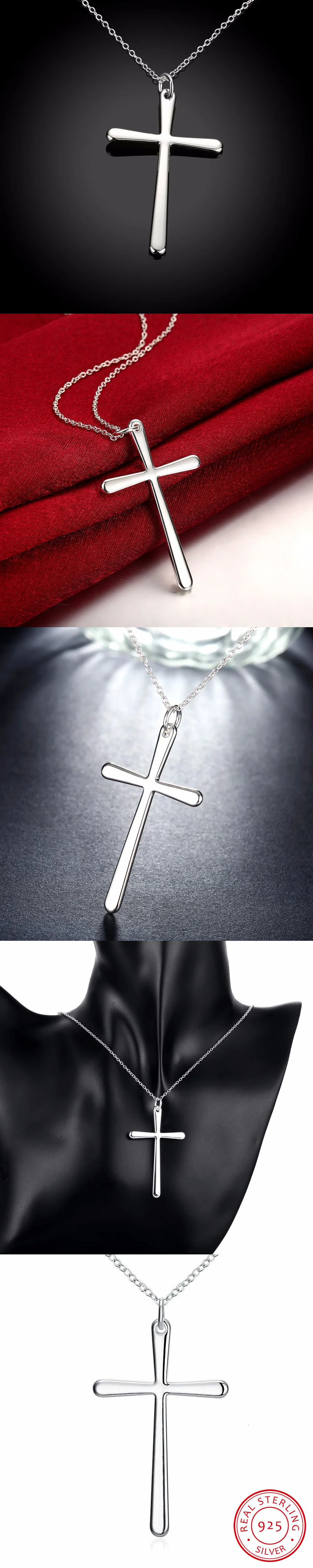 ペンダント ネックレス シルバー チェーン シンプル クロス リング レディース 新しい クール ガール 925 スターリング ファイン 收藏