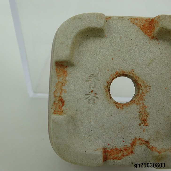 【中古】 盆栽鉢 青香 豆鉢 長辺 約4.5cm 正方鉢 釉薬 現品 中古鉢 收藏