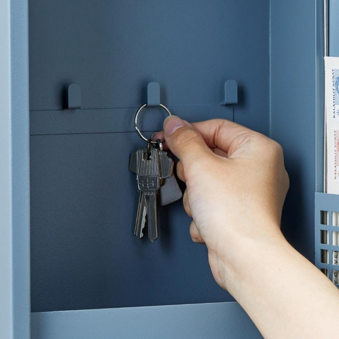 | 最大12個の鍵が収納可能です。下部分には印鑑などの収納に便利なスペース。ドアには手紙などの収納に便利なスペース ※商品は手作りの為、塗装や形状に多少のばらつきがありますのでご了承ください。 |