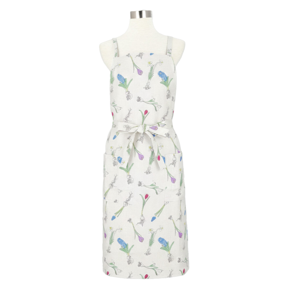 ☆ バルブフラワー/グレイ ☆ Bergamotショートエプロン フレンズヒル エプロン レディース カフェエプロン 綿麻エプロン 前掛 前掛け 收藏