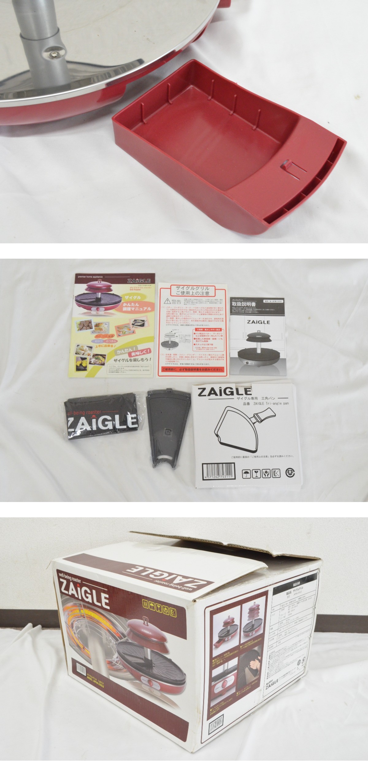 E◆未使用 通電OK◇ZAIGLE ザイグル MODEL No: JAPAN-ZAIGLE 赤外線グリルロースター ホットプレート ザイグル専用 三角パン 取説 箱付◆ 收藏
