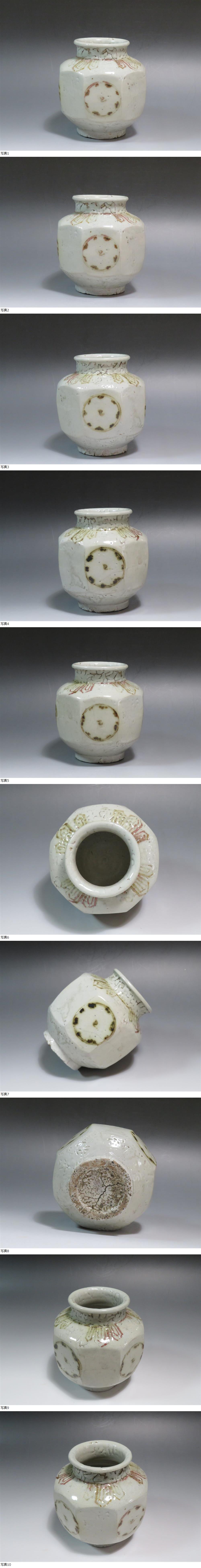 李朝 釉裏紅(辰砂)面取丸文壷 朝鮮古陶磁 アンティーク 骨董品 C239 收藏