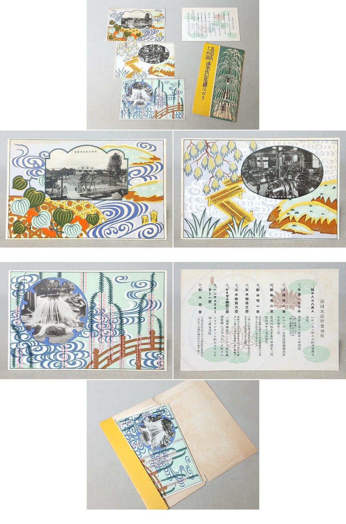 【戦前・絵葉書】 富山県 高岡市上水道 通水式記念 3枚+説明書 袋付き 水源地 // 古写真 資料◆