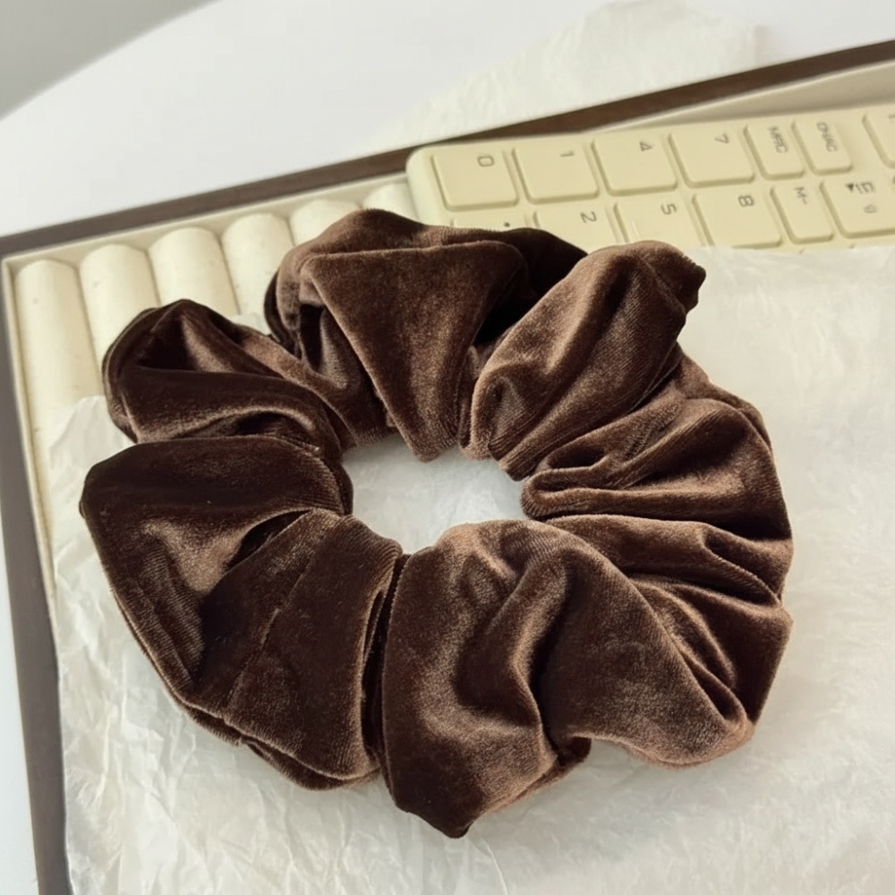 ☆ ブラウン ☆ シュシュ ヘアゴム 大きめ 光沢 シュシュ ベロア 大きめ ヘアゴム 大人 ヘアアクセサリー 髪飾り ヘアアクセ 收藏