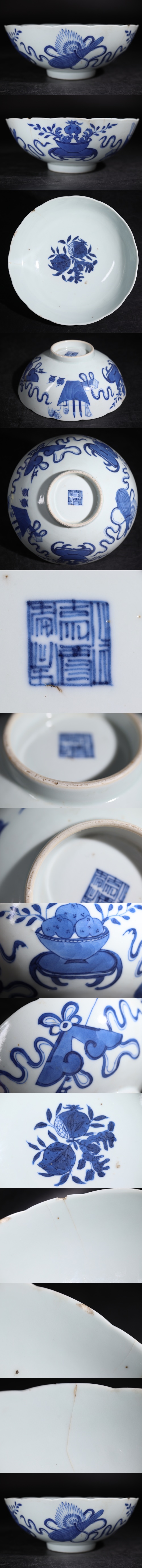 | 大清嘉慶年製 底款 染付 宝尽くし文 茶碗 / 清 嘉慶 中国美術 茶器 煎茶道具 .G3314 |