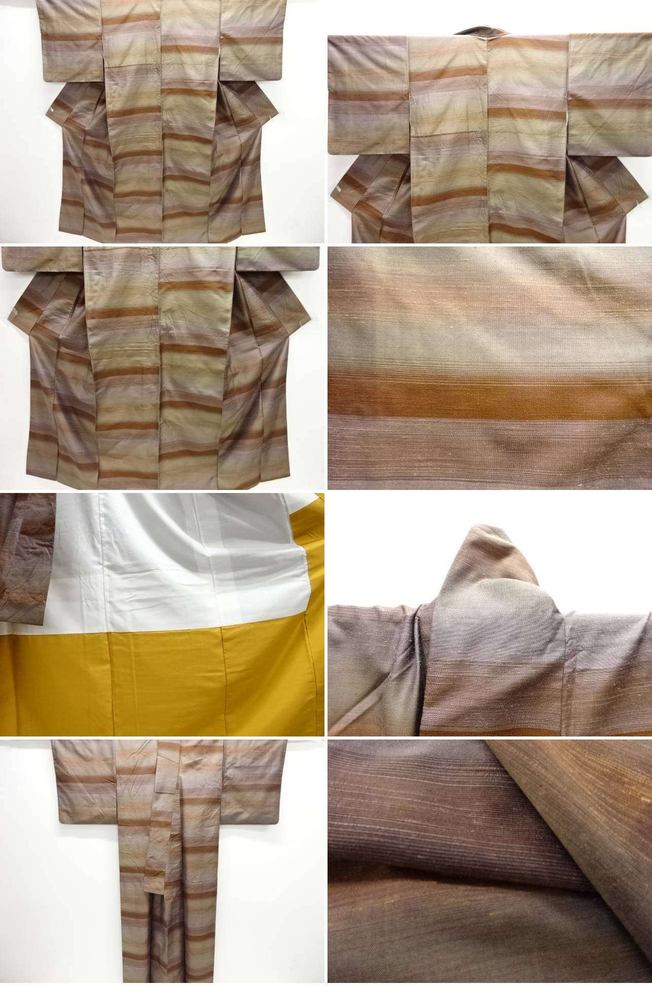 | お着物の状態をできる限りお伝えできるよう努力しておりますが、当店で出品の商品は全てアンティークになります。 一品一品丁寧に検品の上、出品させて頂いておりますが、稀に小さな見落としや、アンティーク特有の経年に伴う汚れや傷のある場合もございますので、アンティーク・中古品にご理解ある方のみのご入札をお願い致します。 寸法に関しましては、一品一品手作業での採寸であり、性質上生地の伸縮性もございますので、若干の誤差はご了承ください。 ごく稀にですが、樟脳やアンティーク特有の匂いがある場合がございます。 匂いに関しては、商品コメントには記載しておりませんので、ご理解の上ご入札下さい。 はぎれ商品につきましては、解き商品が多くなっております。 生地端に縫い糸の残りが多く残った状態での出品となります。 ご理解の上でのご入札と、ご自宅でのお手入れをお願い申し上げます。 | |