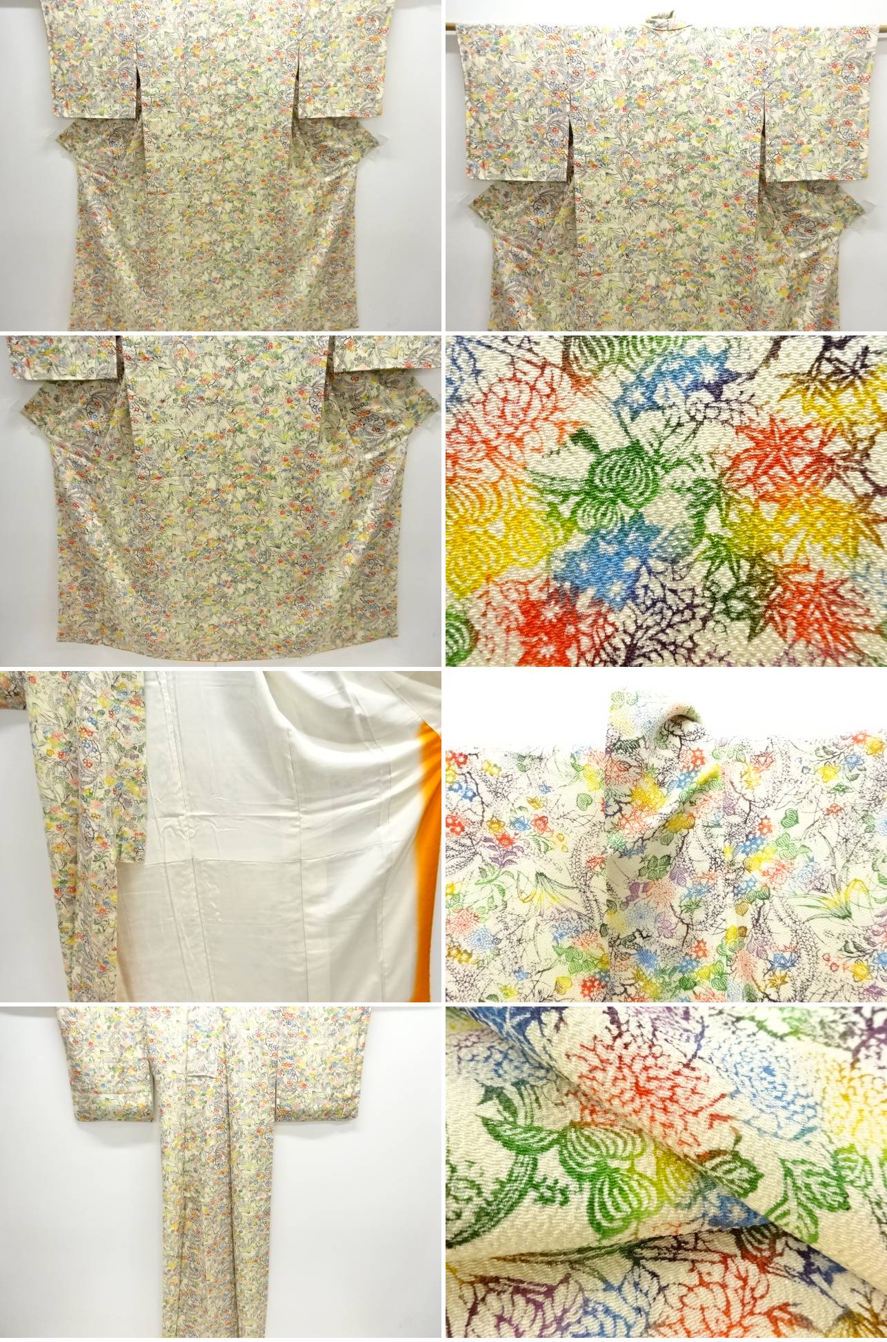 衿は広衿です。 八掛に染めムラ、薄アクが有ります。 状態は大変良いです。 着用可能です。 採寸・検品:あかほし、宮野 撮影:泉 素材は正絹です。 地色はクリームです。 お支払い方法、送料・手数料はストア情報よりご確認お願いいたします。 全国一律1300円。11000円以上で送料無料 ※8/12より送料が変更されています。ご理解の上ご入札ください。 複数ご落札の場合で個別に発送住所がそれぞれ異なる場合は、お手数ですが、別途メールでご連絡下さい。 以前と発送先が異なる場合、別途メールでご連絡下さい。 多少の時代シミ、くすみがある場合があります。 デジタルカメラやモニターの特性により色が忠実に再現できない場合があります。 ご理解頂いた上でのご入札お待ちしております。 ご返品もお受け致しますが、送料、振り込み手数料は、お客様負担でお願いします。 |