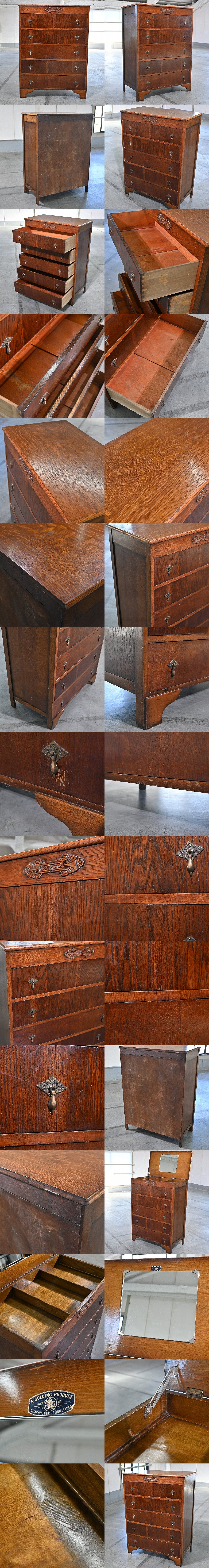 英国アンティーク バチェラーチェスト オーク材 洋服 引き出し 収納 ミラー 鏡 小物 ビンテージ イギリス GOLDING_ロイズアンティークス 收藏