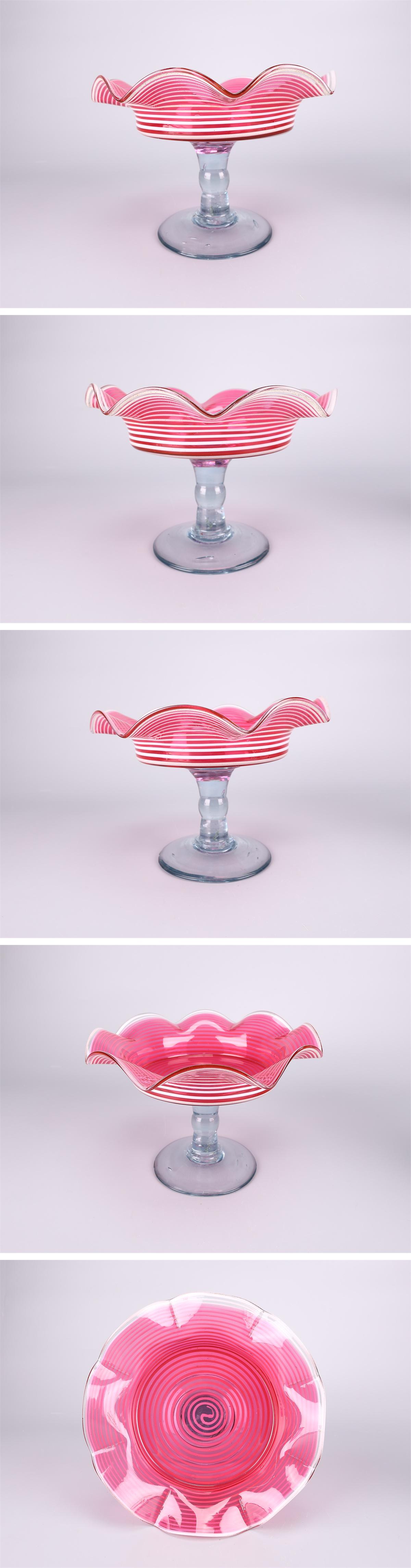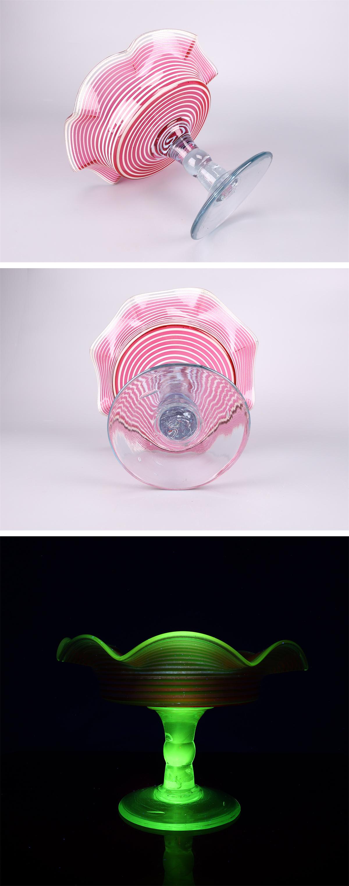 【吉】PD534 明治大正期 【ウランガラス】 内赤外白掻揚フリル 氷コップ 高16.5㎝ 径24㎝/美品! 收藏