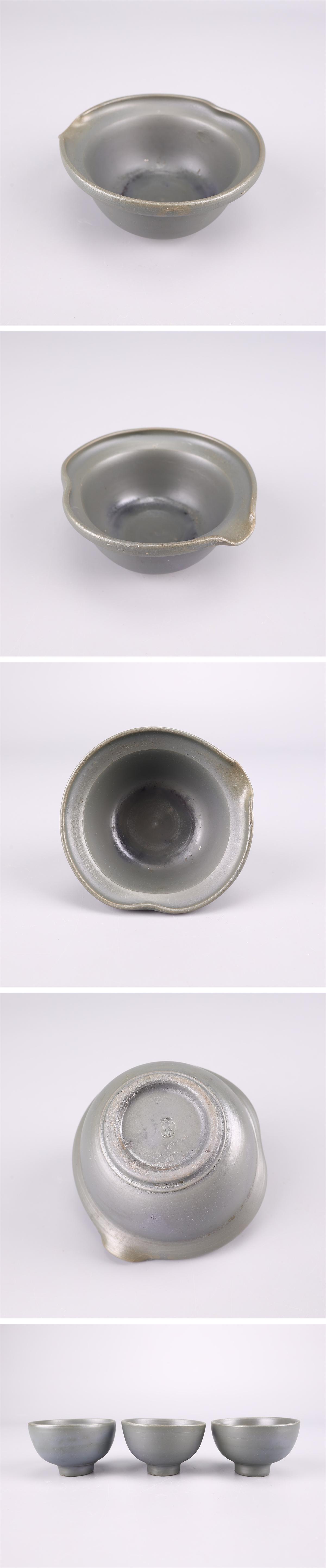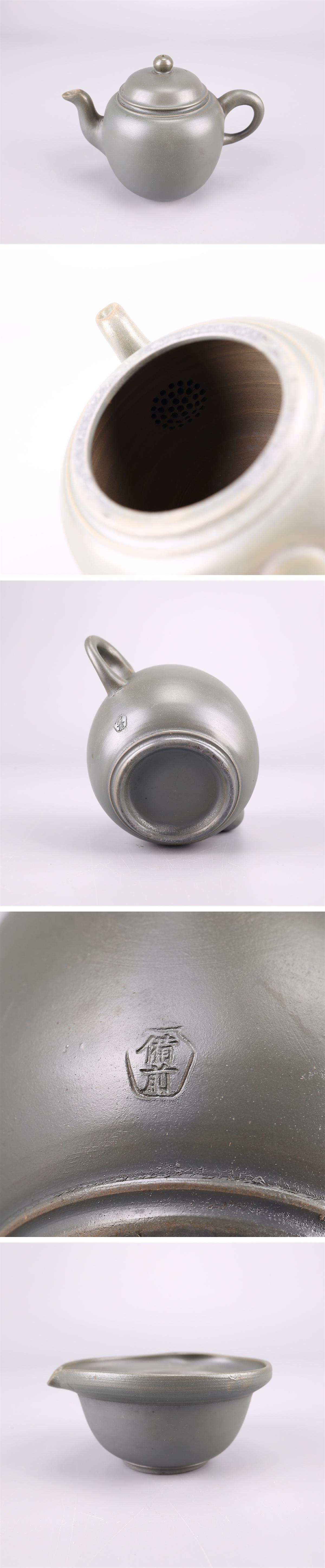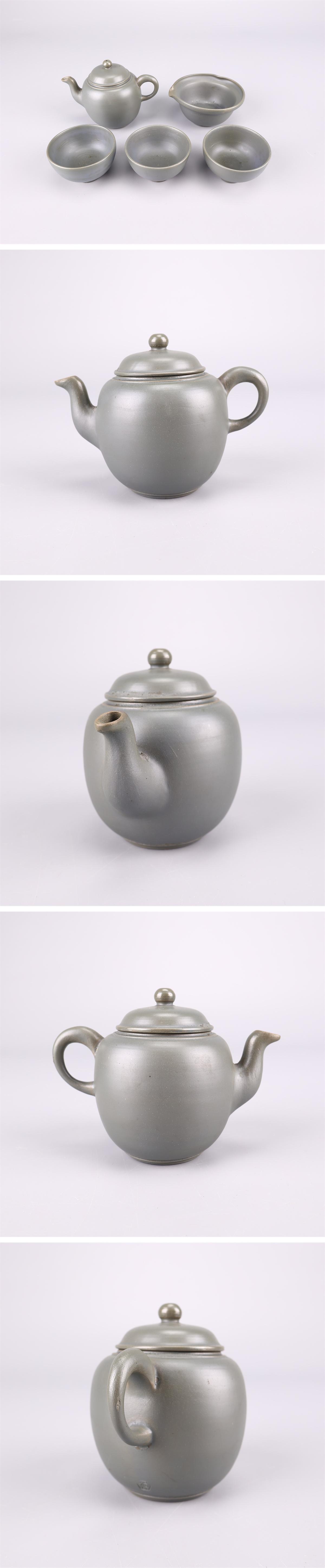【吉】CO787 江戸時代 古備前焼 【青備前】 急須 湯冷 湯呑 5点セット/時代の擦れあり! 收藏