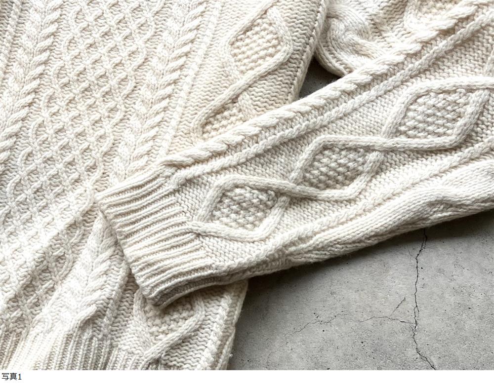 美品 ハリウッドランチマーケット ケーブル編み ウールニットセーター 2/M メンズ 肉厚 フィッシャーマンニット 收藏