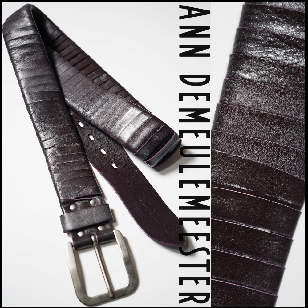 デットストック/アーカイブ/新品【 Ann Demeulemeester アンドゥムルメステール 】08AW/伊製/装飾加工ロングレザーベルトL/95-120cm相当 收藏