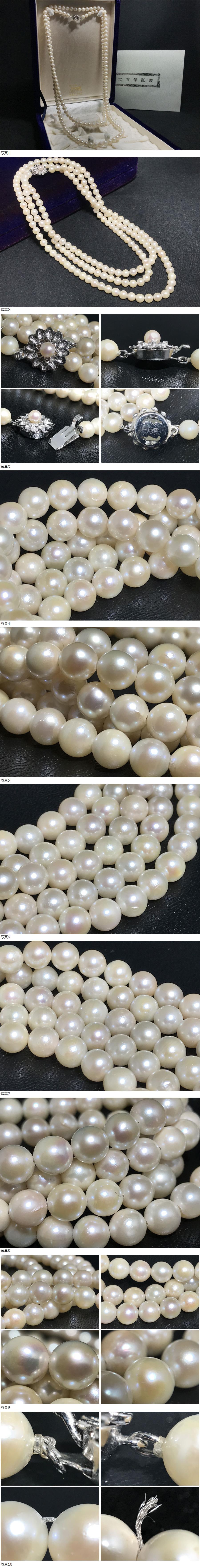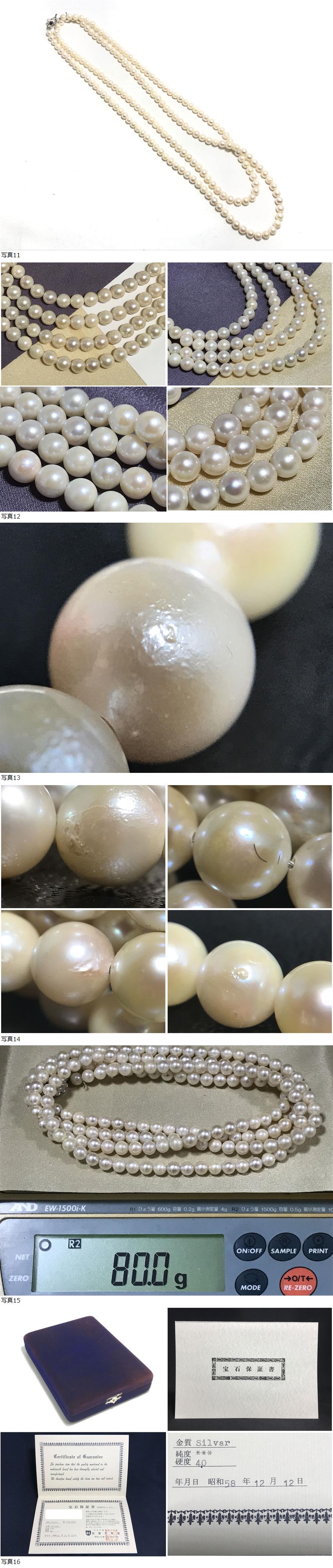 本真珠 宝石保証書付 真珠 パール ロングネックレス 留め具 (G.SILVER) 約6.4~6.8mm 重量約80g 約123cm 乳白色 ケース付き 收藏
