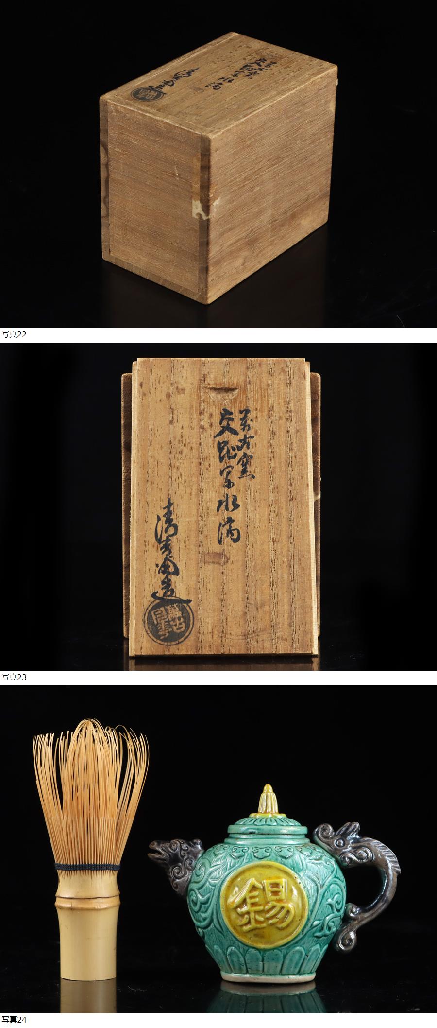 魁◆名家旧蔵 蔵出うぶ荷 本物保証 清香堂 造 加賀月華 萬古交趾写「錫永」字入 水滴 桑名 萬古焼 煎茶道具水滴 高さ8.5㎝ 共箱 ma 收藏
