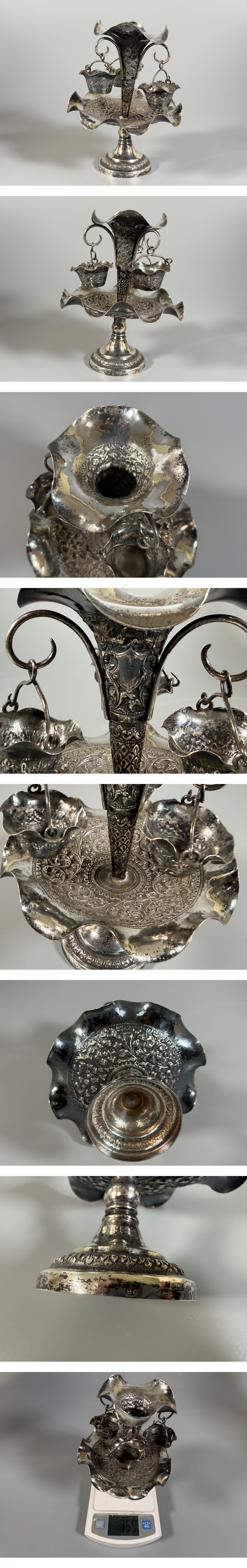 【小】5556 西洋アンティーク 銀製花瓶 花生 銀900 シルバー製 重量359g 時代物 銀食器 90刻印 收藏
