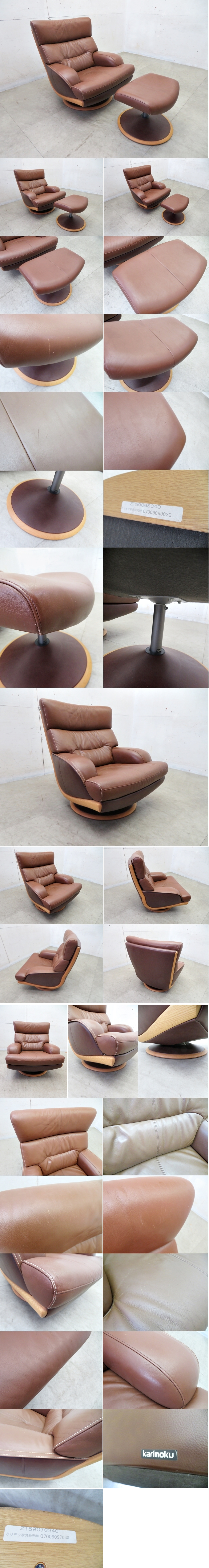 ■P329■美品■国産最高峰■karimoku カリモク■ZT59■本革■1人掛けソファ■回転式ソファ■オットマン付き■スツール■ブラウン■モダン 收藏