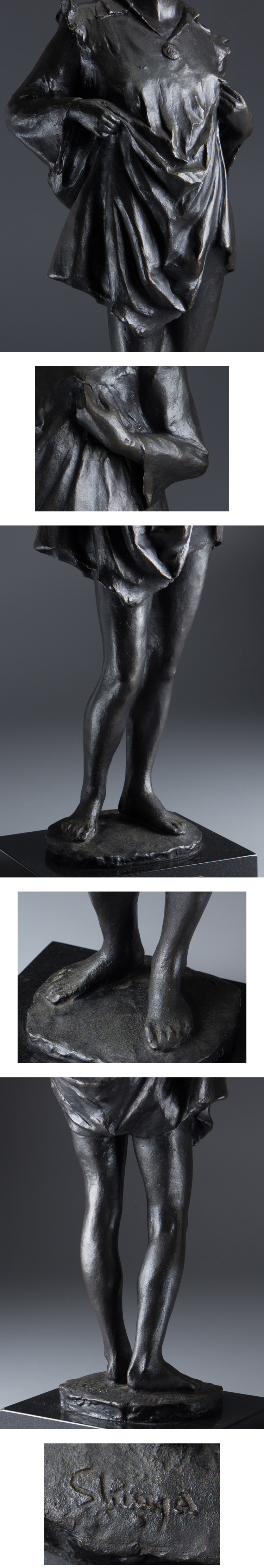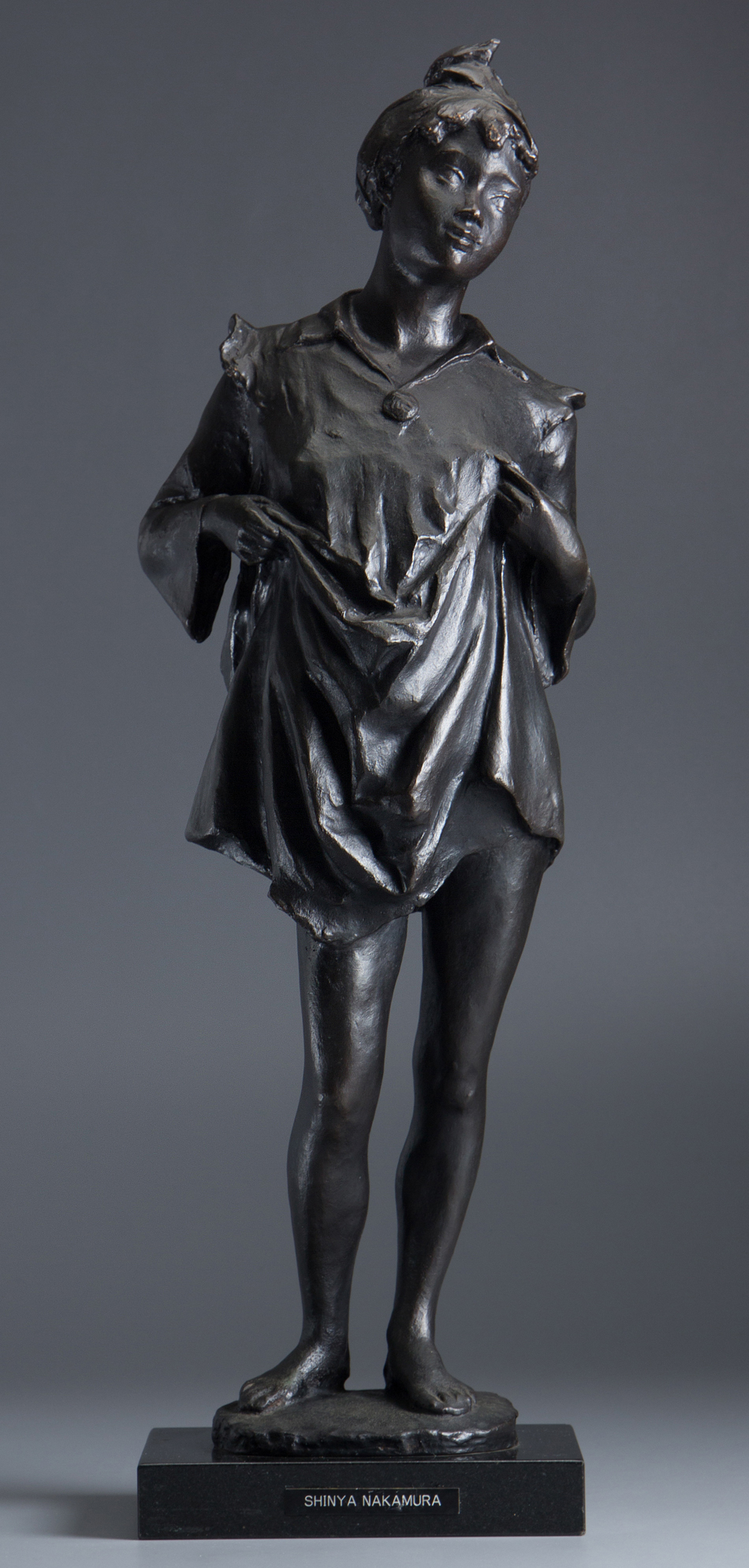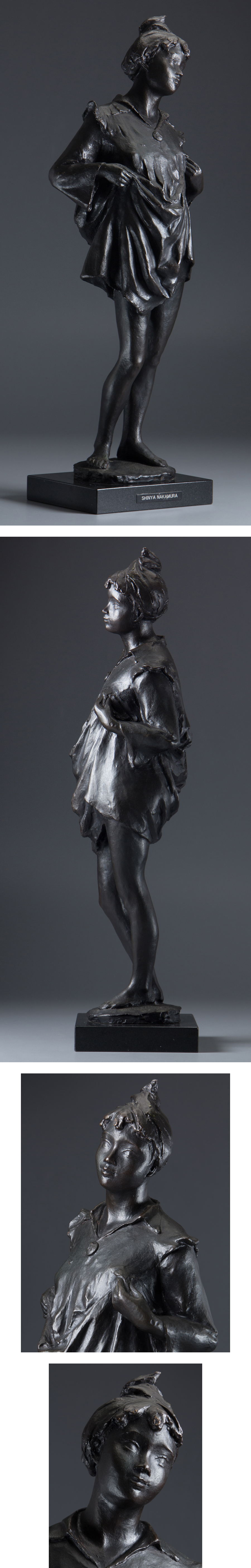 【1on1】真作 中村晋也 『水辺の囁き』 ブロンズ 台座付 高61.5cm 重12.2kg ■ 日本芸術院会員 日展常務理事 日本彫刻会常務理事 文化勲章 收藏