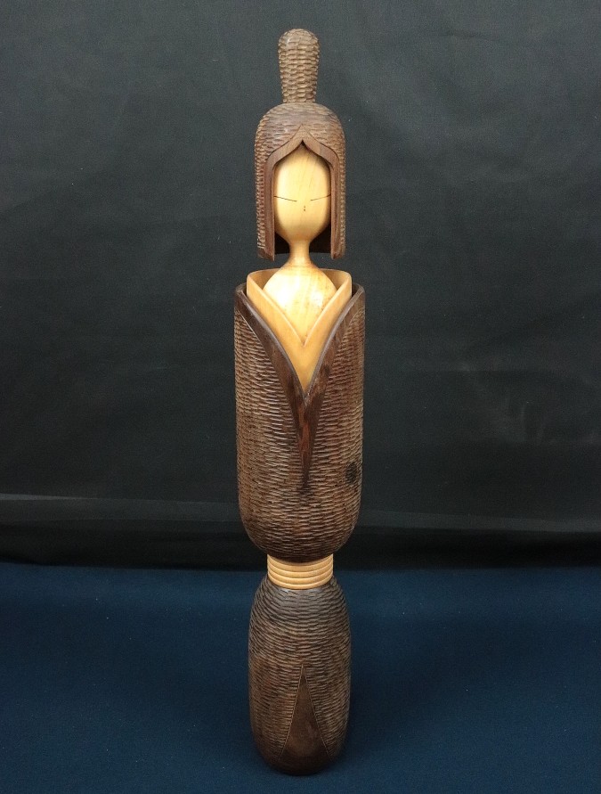 12661■【真作】志藤尚山 創作こけし 特大60cm 1.73kg 郷土玩具 木製 民藝 伝統工芸 全国展首席・総理大臣賞受賞者 置物 收藏