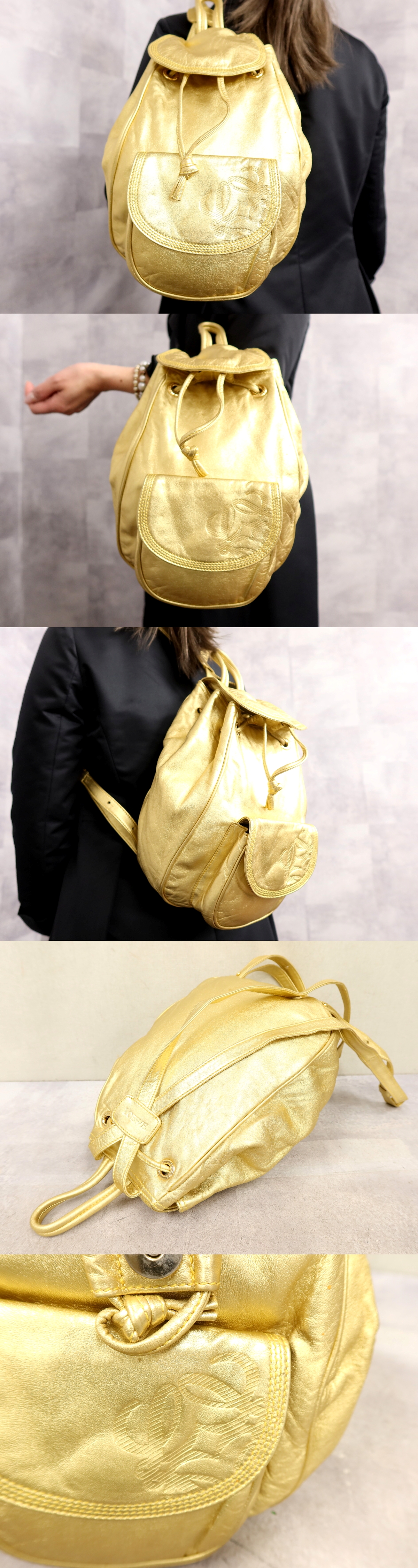 ●超美品●LOEWE ロエベ●アナグラム●ロゴ型押し●ナッパ レザー 本革●ショルダー バッグ リュックサック●ゴールド●G金具●Js65416 收藏