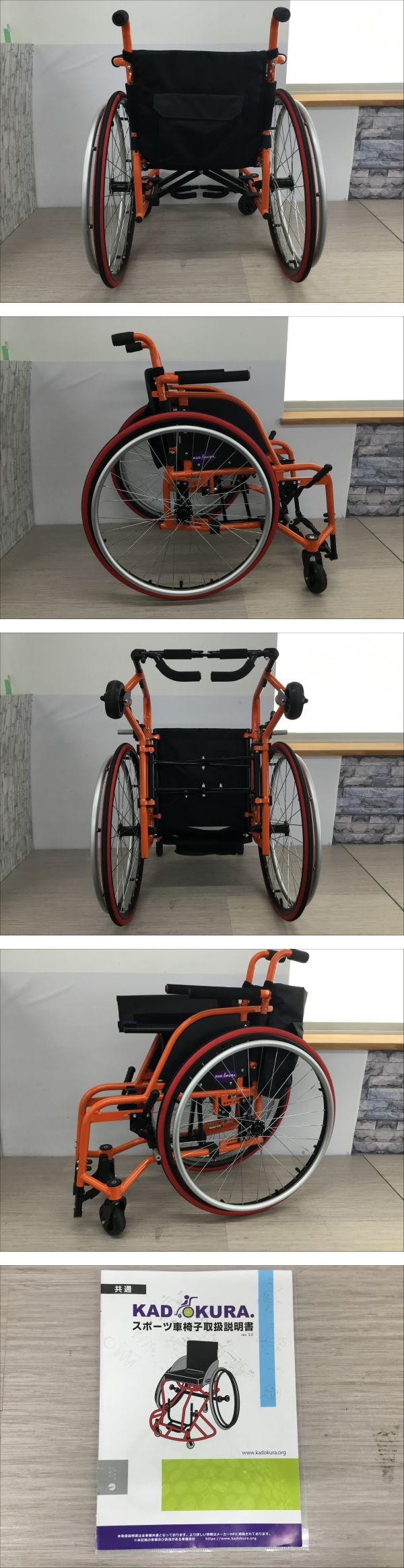 ●営FU431-200B KADOKURA カドクラ カルビッシュ スポーツ車椅子 車イス 軽量 折りたたみ 自走式 オレンジ 説明書付き /u 收藏