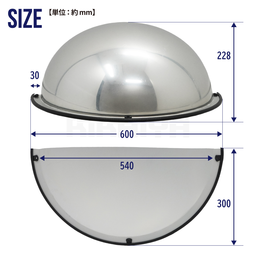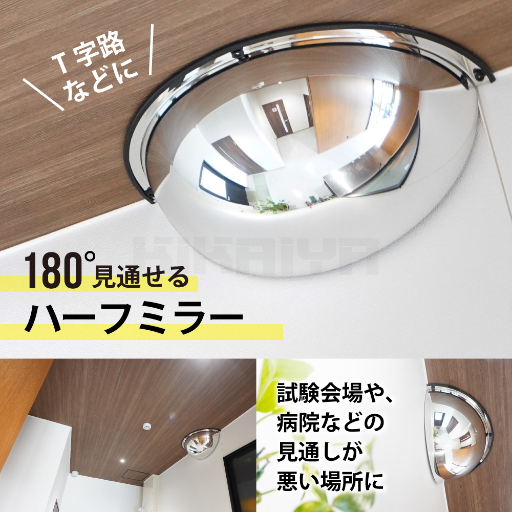 ハーフドームミラー 600mm 180° アクリル T字路 天井 壁付 屋内用 安全ミラー 防犯ミラー ネジ付き 事故防止 收藏