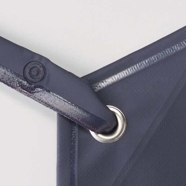 | 素材・材質 | 表:塩化ビニールコーティング 基布:ポリエステル 裏:塩化ビニールコーティング ヒモ:_共ヒモ(イトデナe) ハトメ:ニッケル |