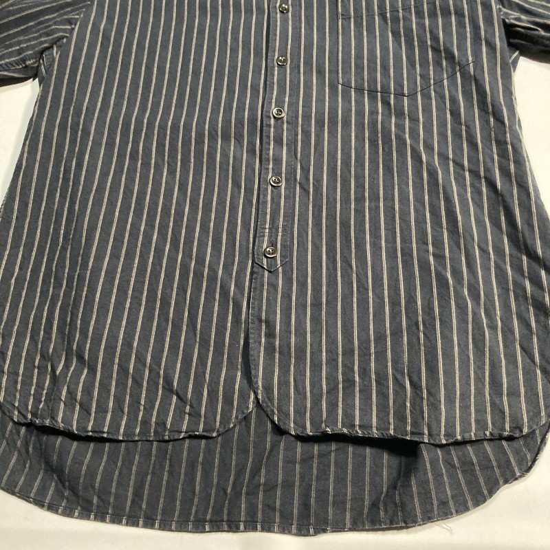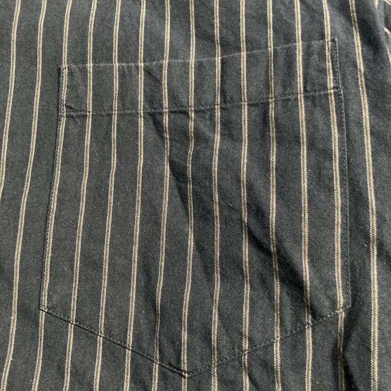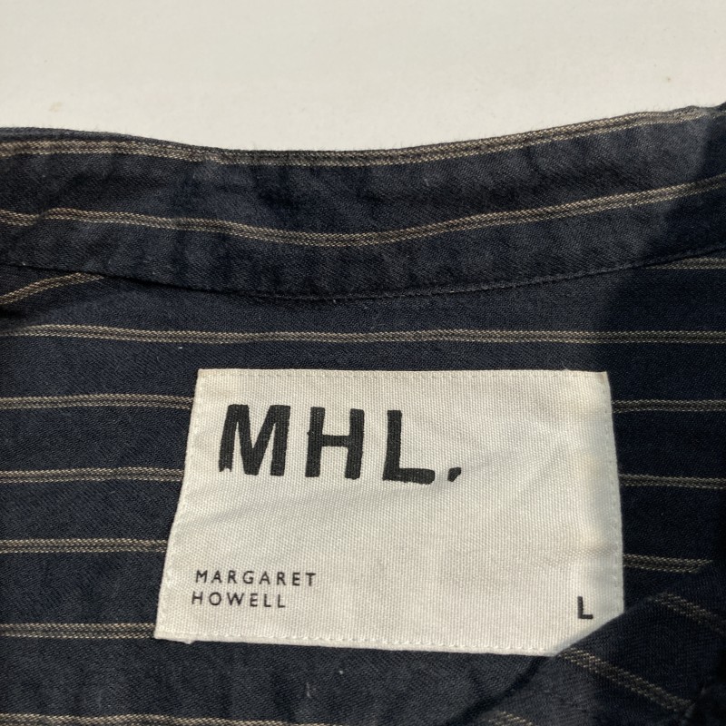 MHL.★ストライプ バンドカラー 長袖シャツ 上品ヴィンテージ風リゾート ナチュラル ノーカラー 黒 L エムエイチエル マーガレットハウエル 收藏
