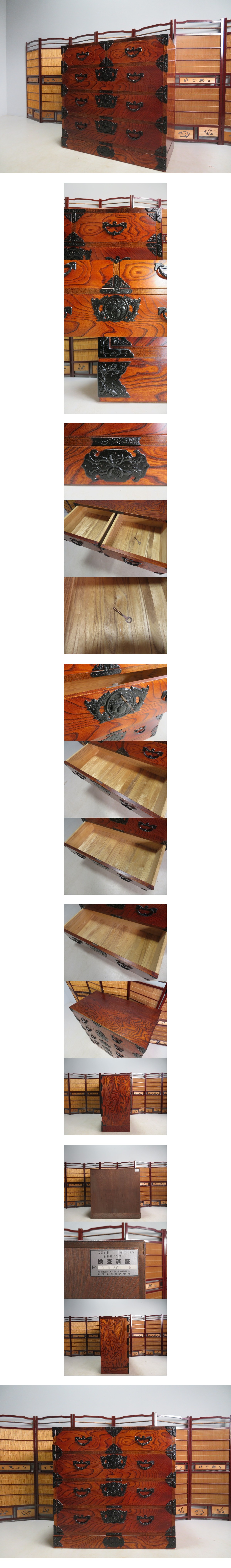 岩谷堂箪笥 欅 桐紋 南部鉄器金具 姫箪笥 整理箪笥 艶あり 漆塗り 中桐 衣装タンス 伝統工芸 鍵付き 收藏